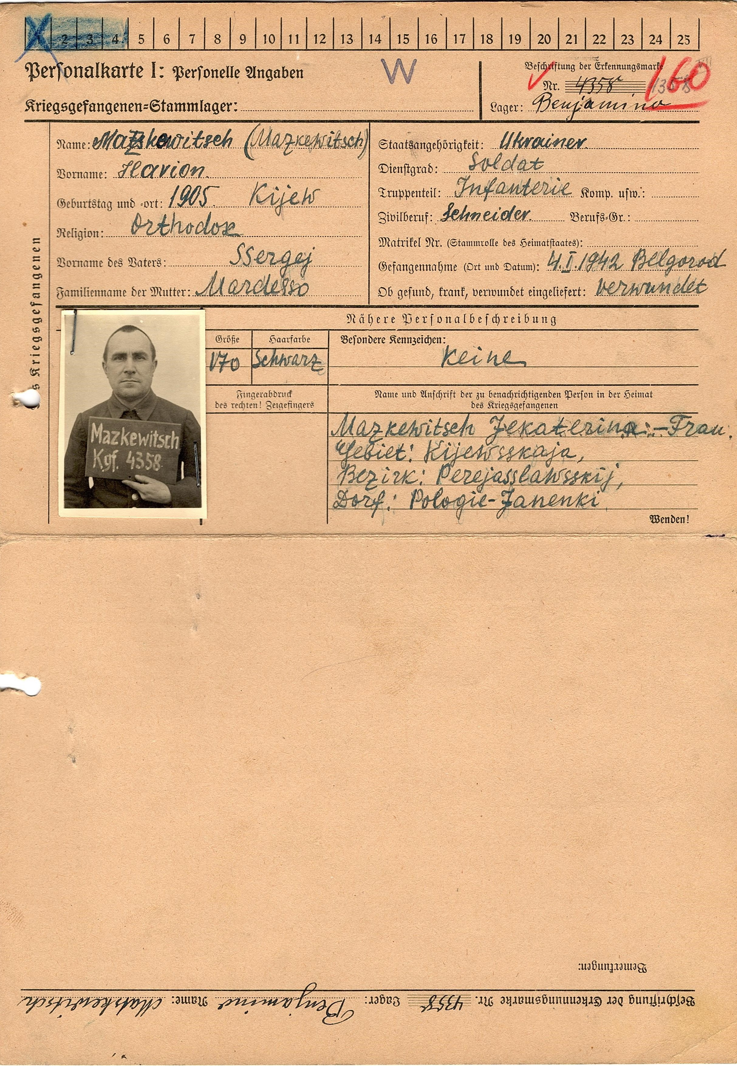 Военнопленные, трофейные карточки. Киевская обл.