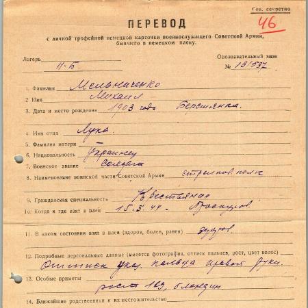 Военнопленные, трофейные карточки. Киевская обл.