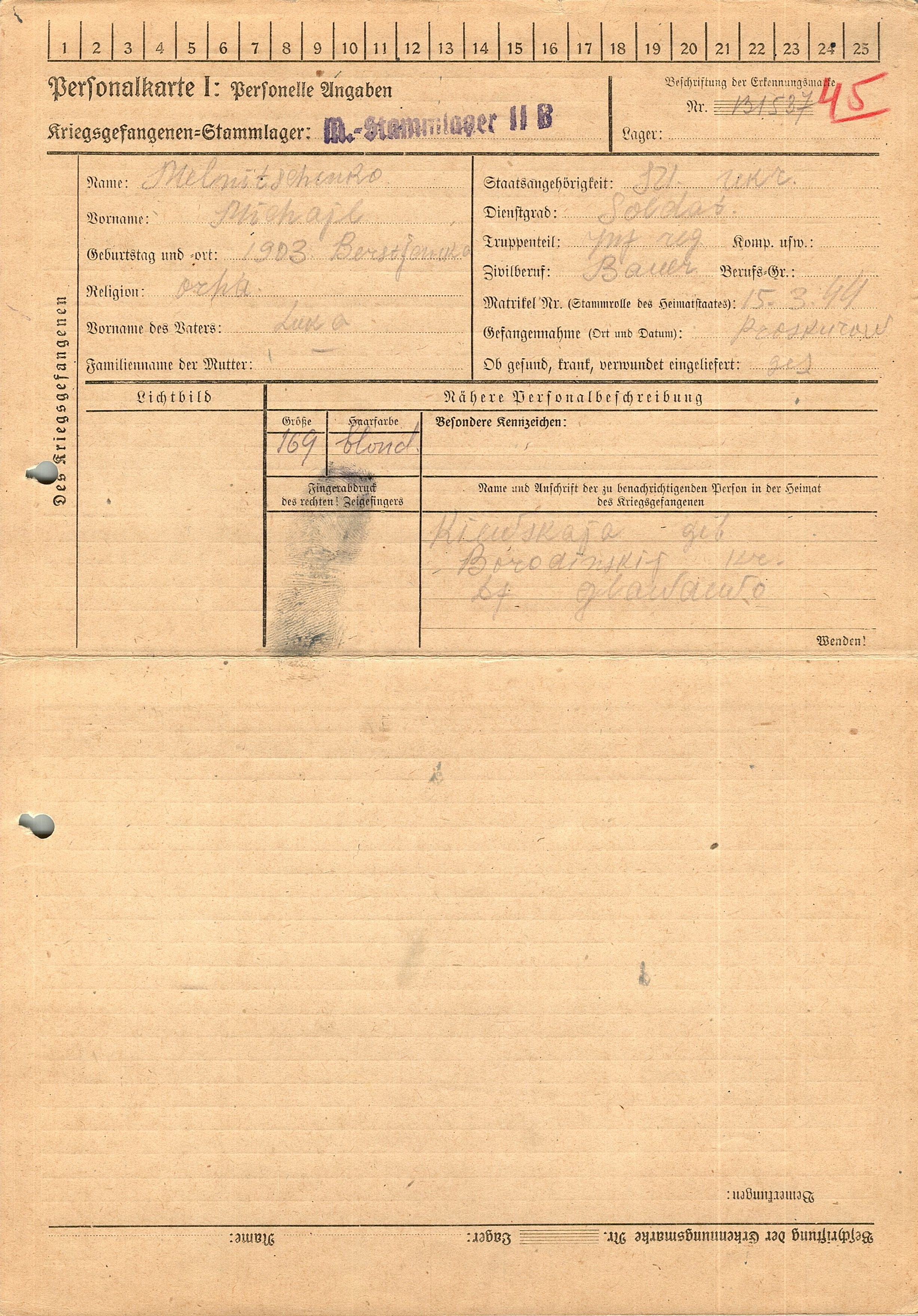 Военнопленные, трофейные карточки. Киевская обл.