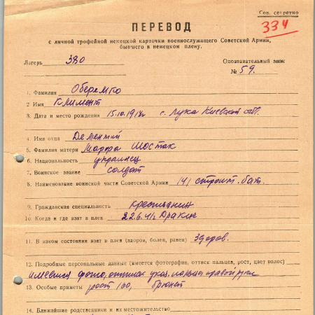Военнопленные, трофейные карточки. Киевская обл.