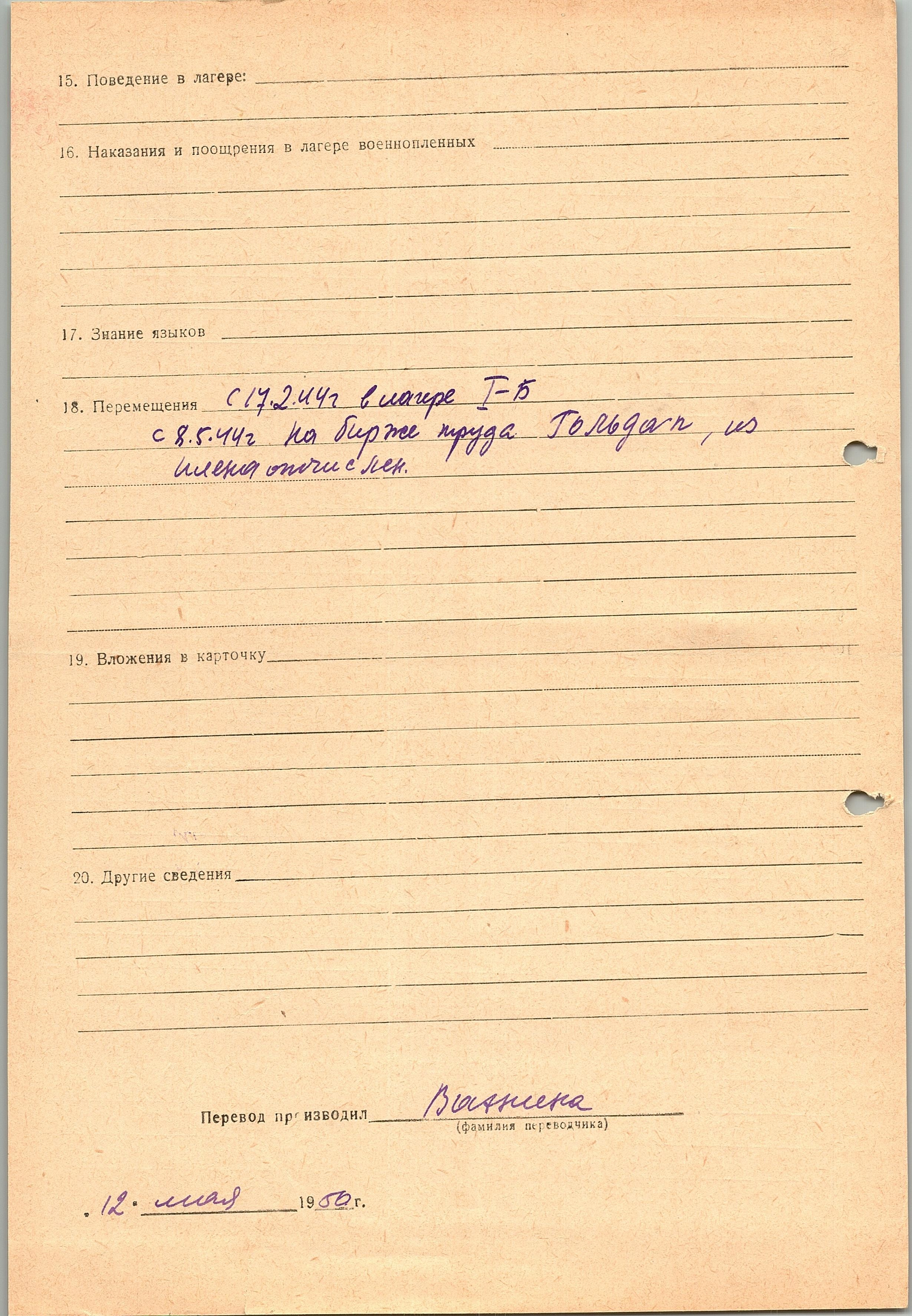 Военнопленные, трофейные карточки. Киевская обл.