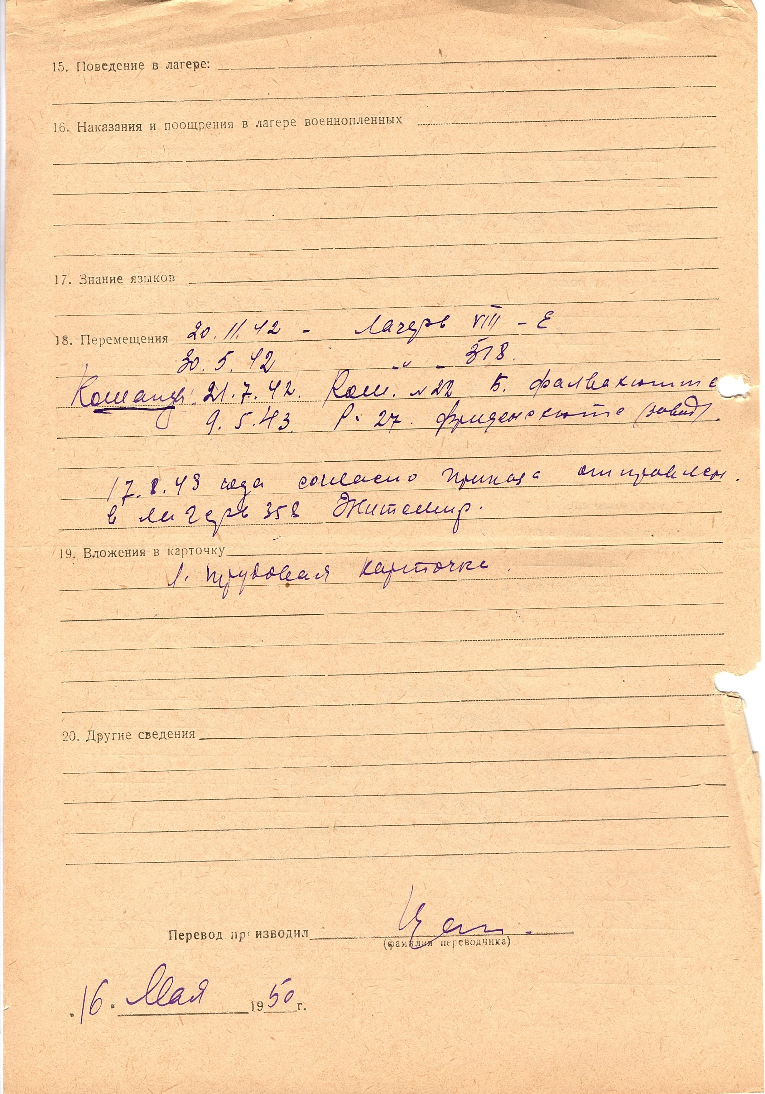 Военнопленные, трофейные карточки. Киевская обл.