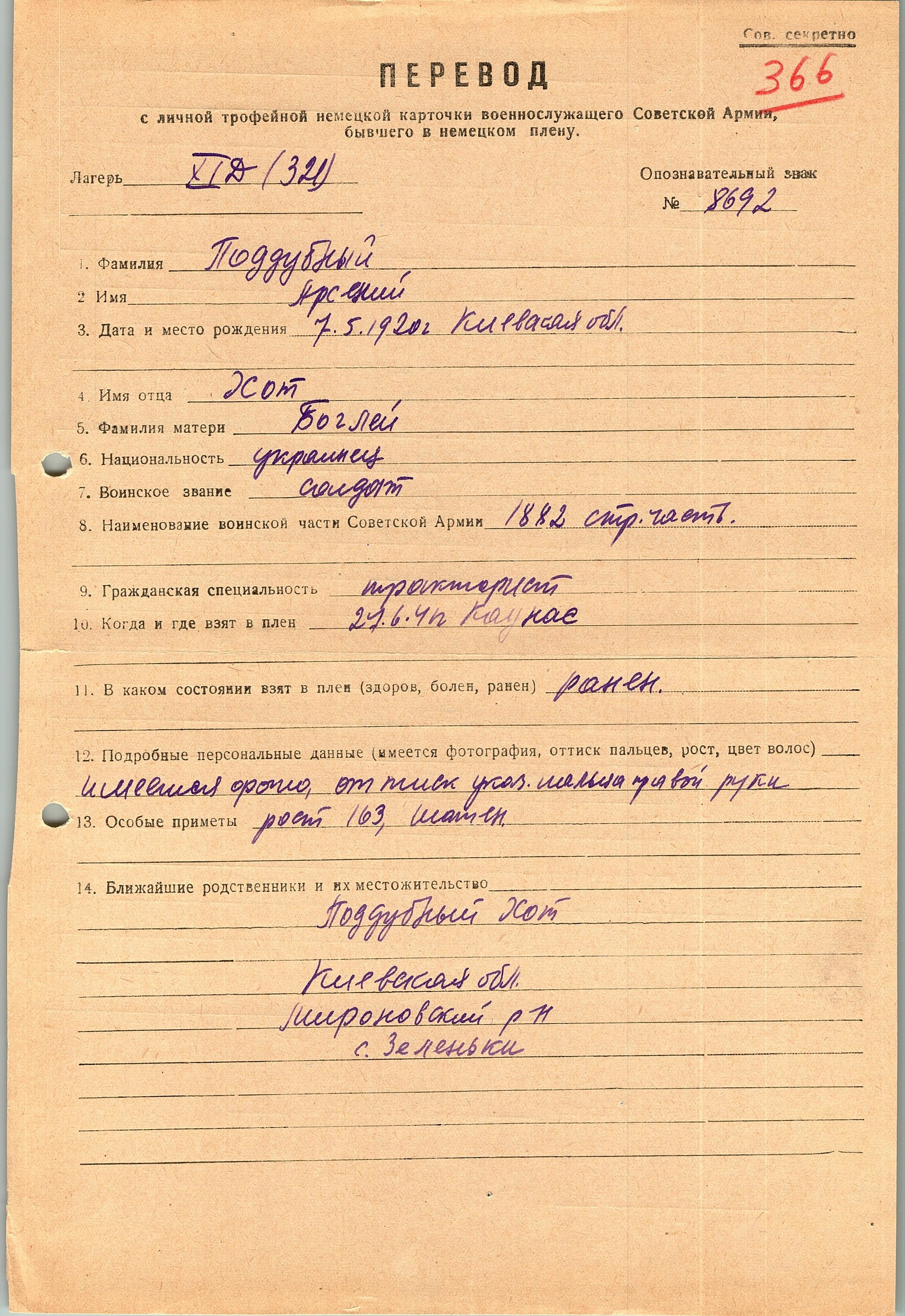 Военнопленные, трофейные карточки. Киевская обл.