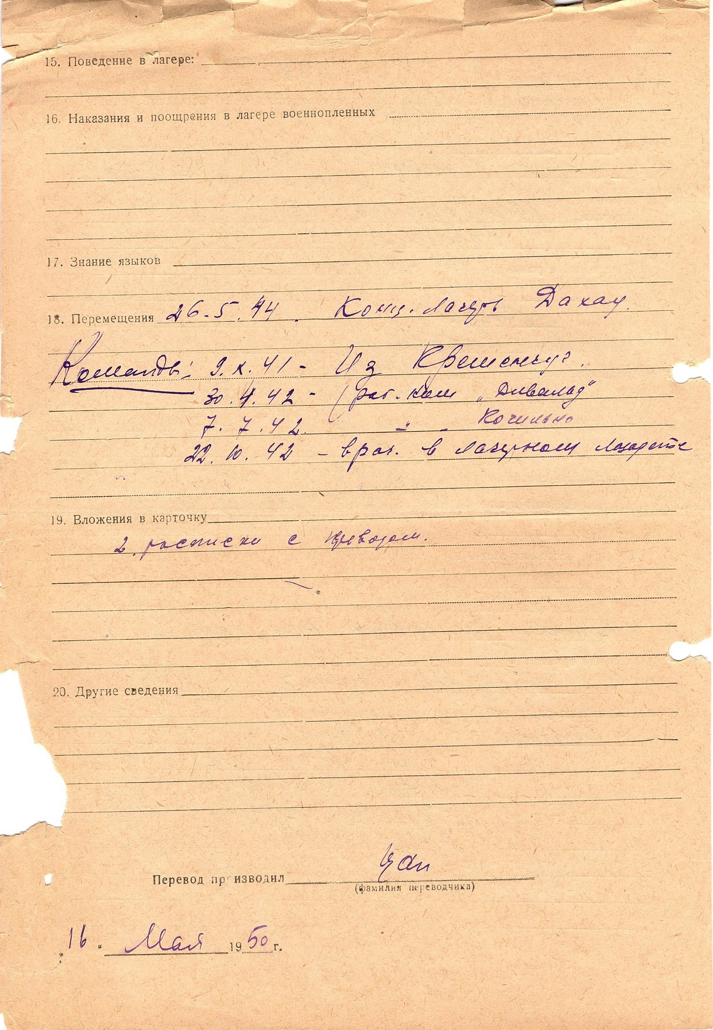 Военнопленные, трофейные карточки. Киевская обл.