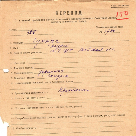 Военнопленные, трофейные карточки. Киевская обл.