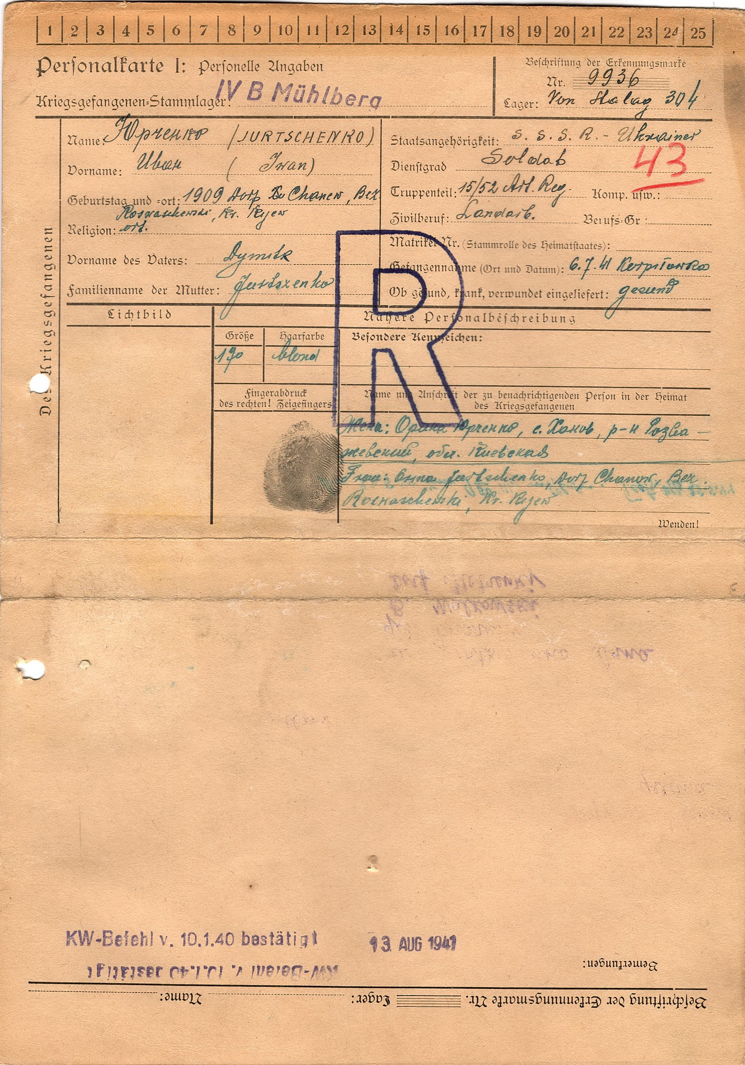 Военнопленные, трофейные карточки. Киевская обл.