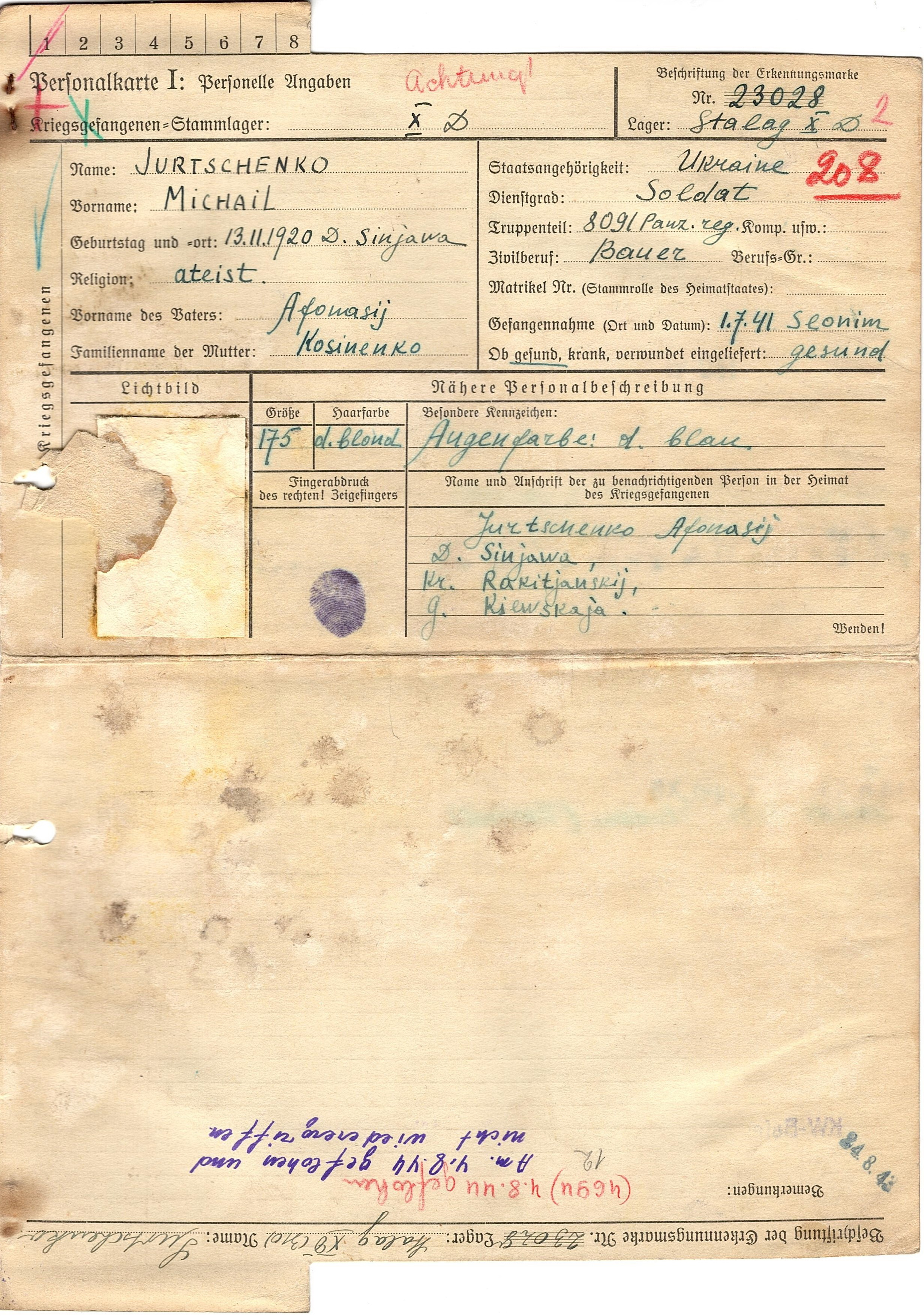 Военнопленные, трофейные карточки. Киевская обл.