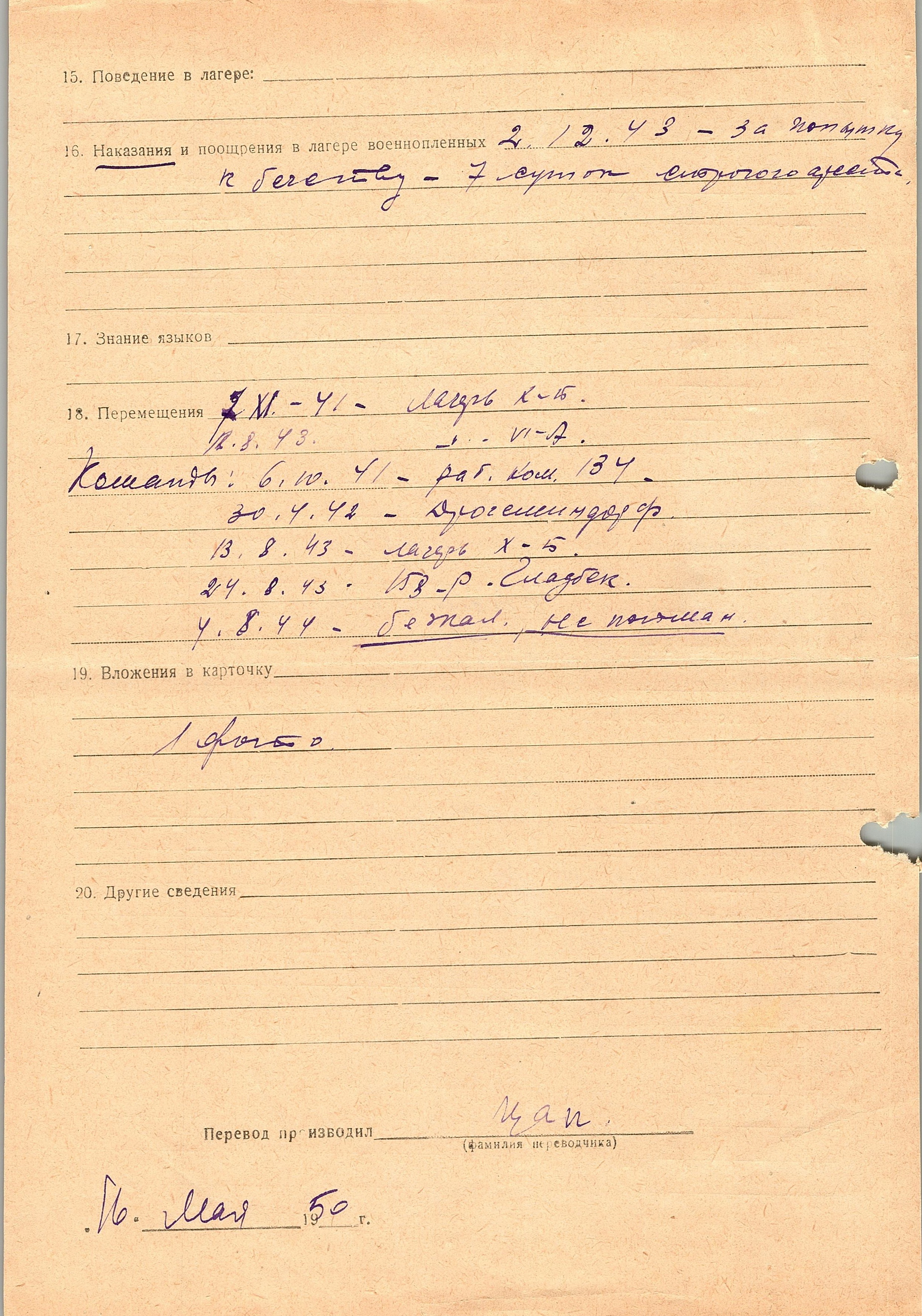 Военнопленные, трофейные карточки. Киевская обл.