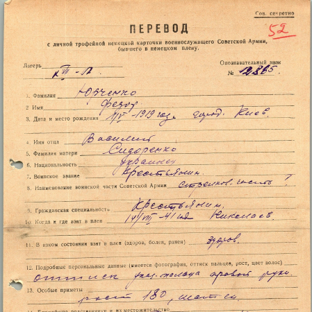 Военнопленные, трофейные карточки. Киевская обл.