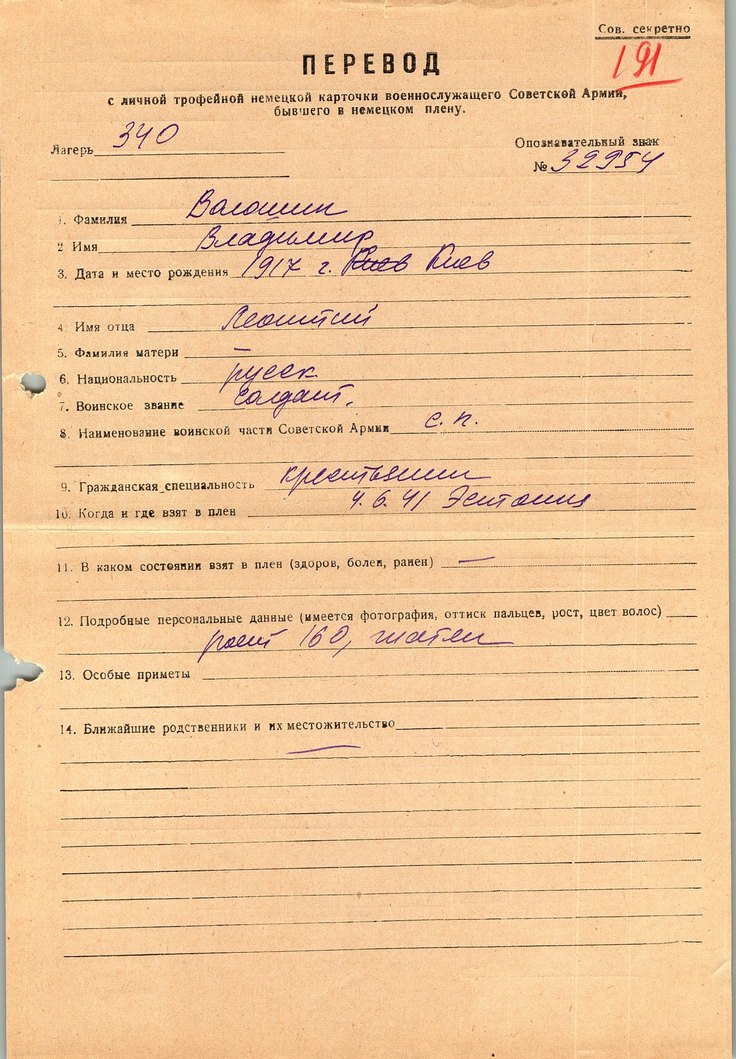 Военнопленные, трофейные карточки. Киевская обл.