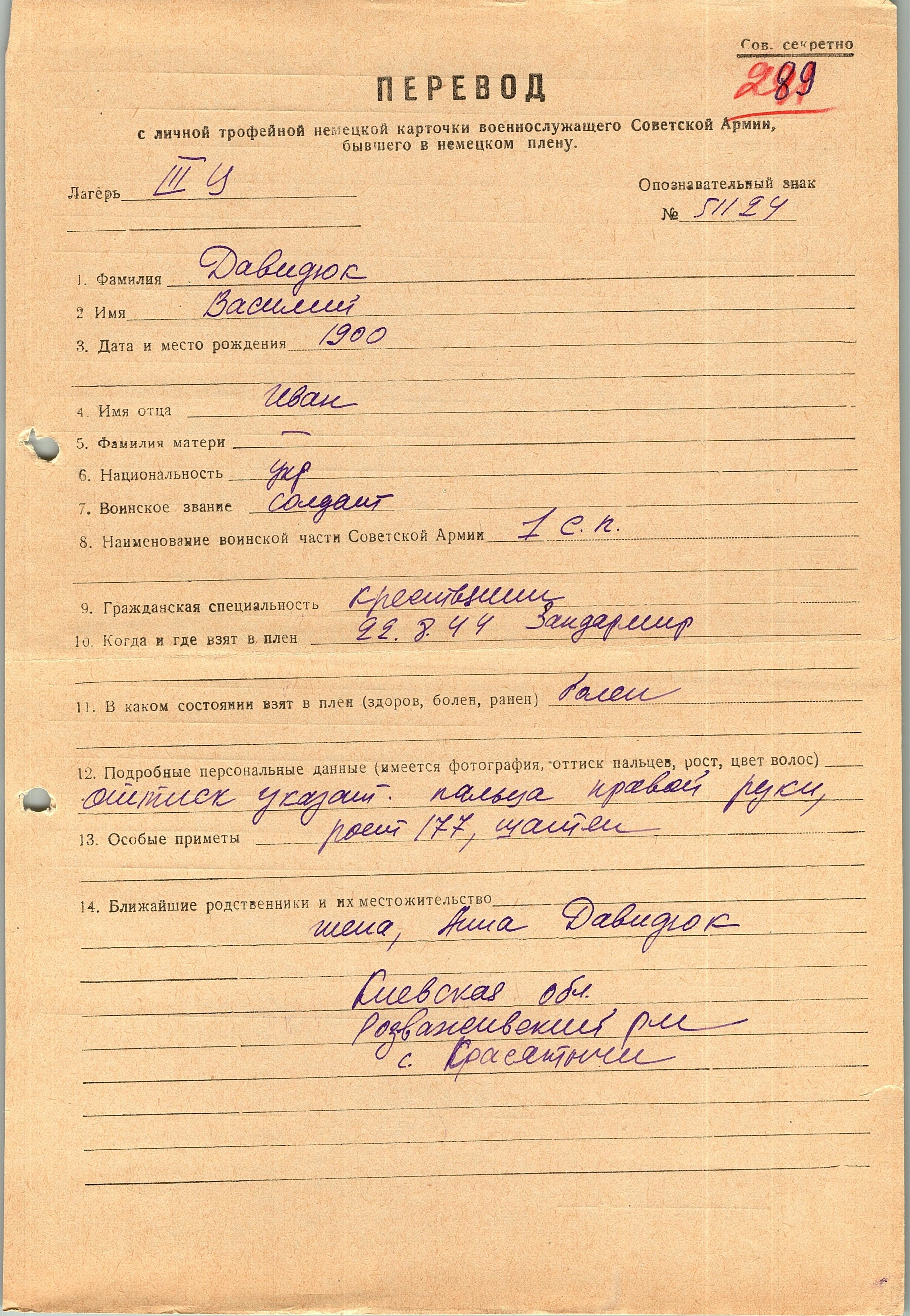 Военнопленные, трофейные карточки. Киевская обл.
