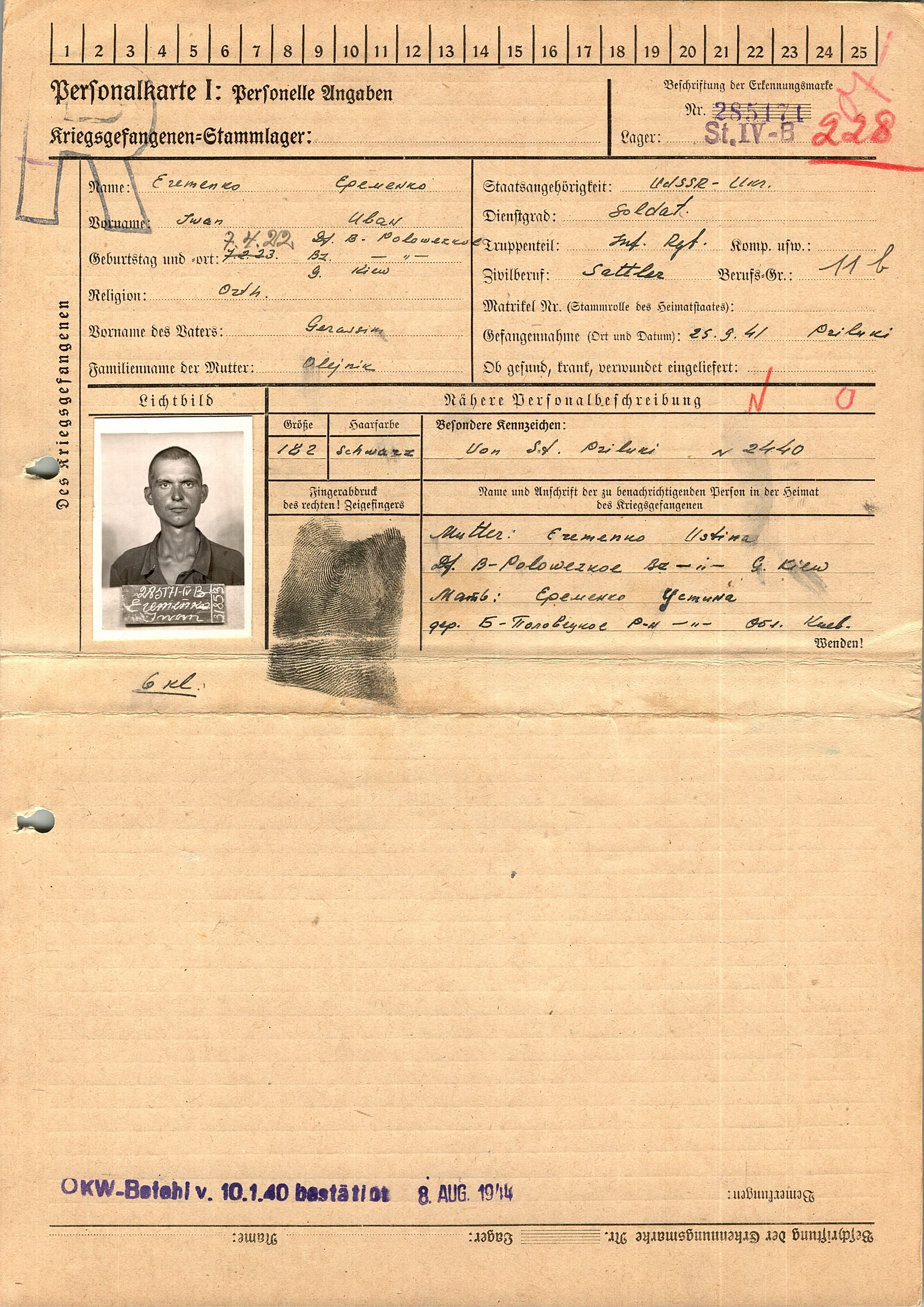 Военнопленные, трофейные карточки. Киевская обл.