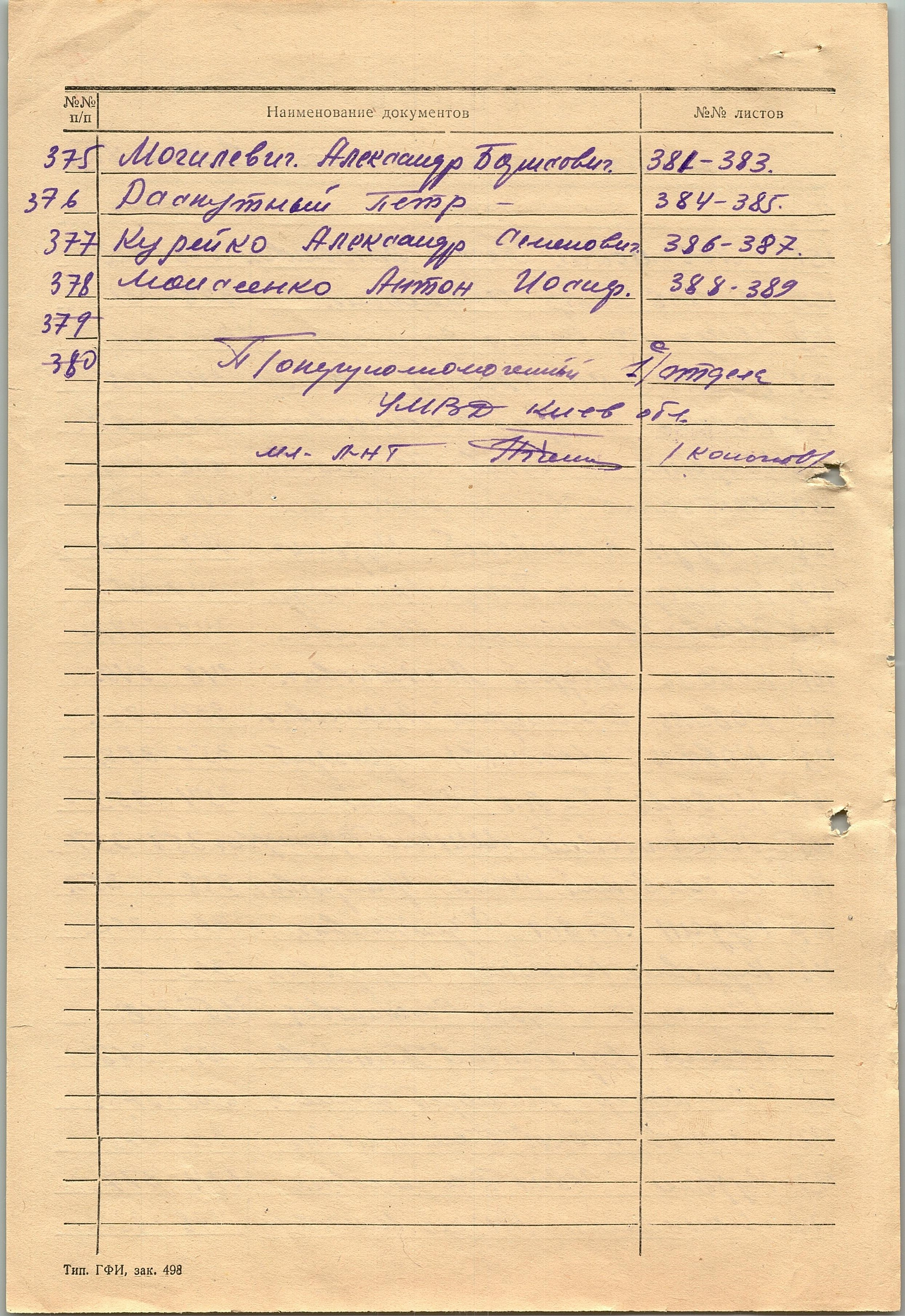 375. Могилевич Александр Борисович 376. Раскутный Петр 377. Курейко Александр Семенович 378. Моисеенко Антон Иосифович