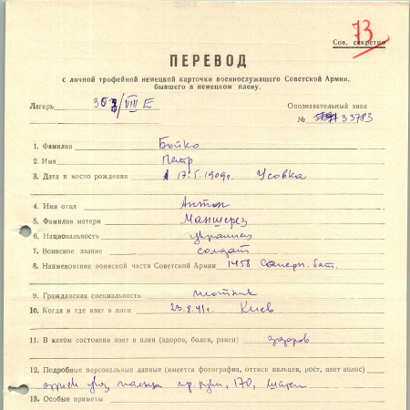 Военнопленные, трофейные карточки. Киевская обл.