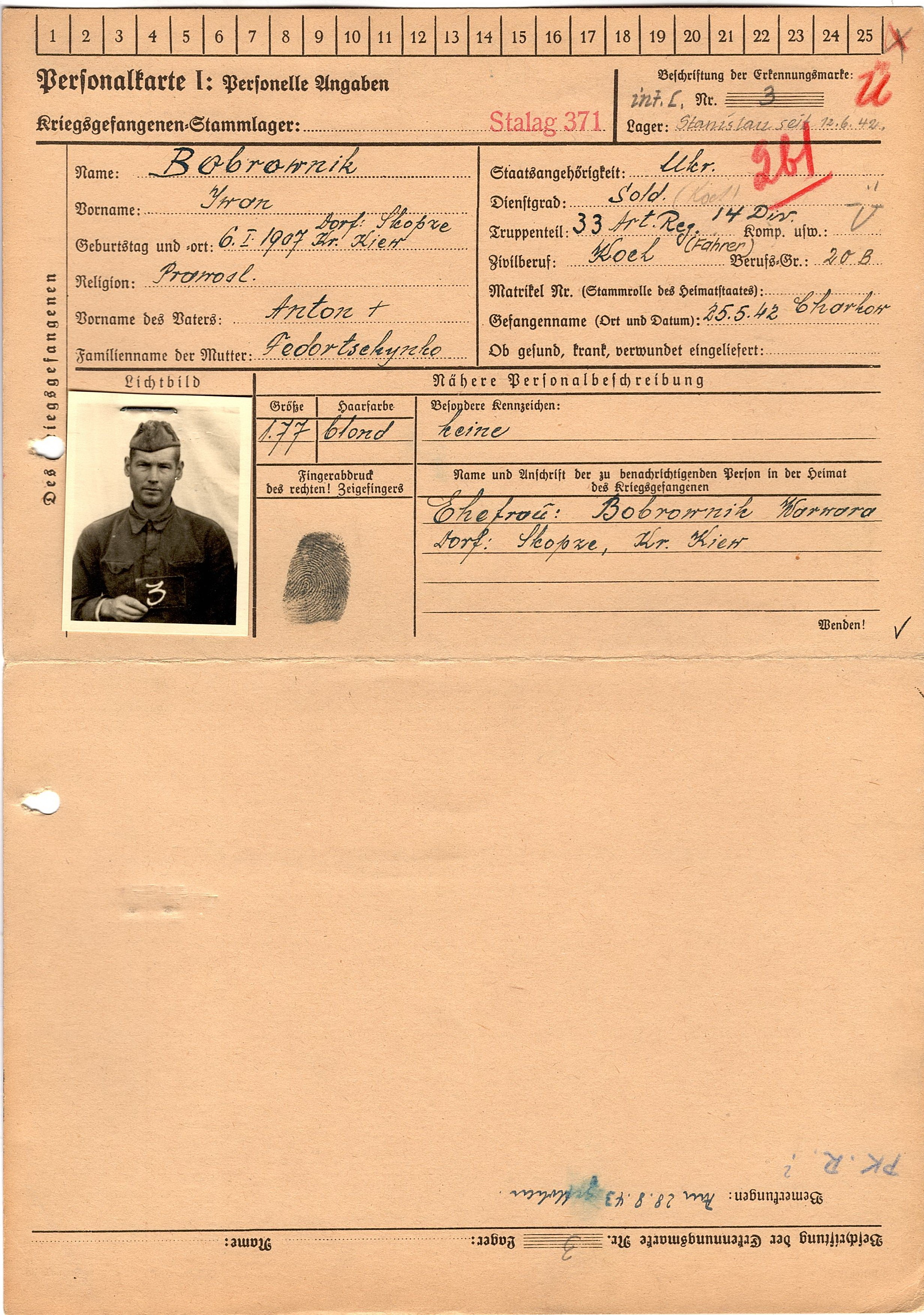 Военнопленные, трофейные карточки. Киевская обл.