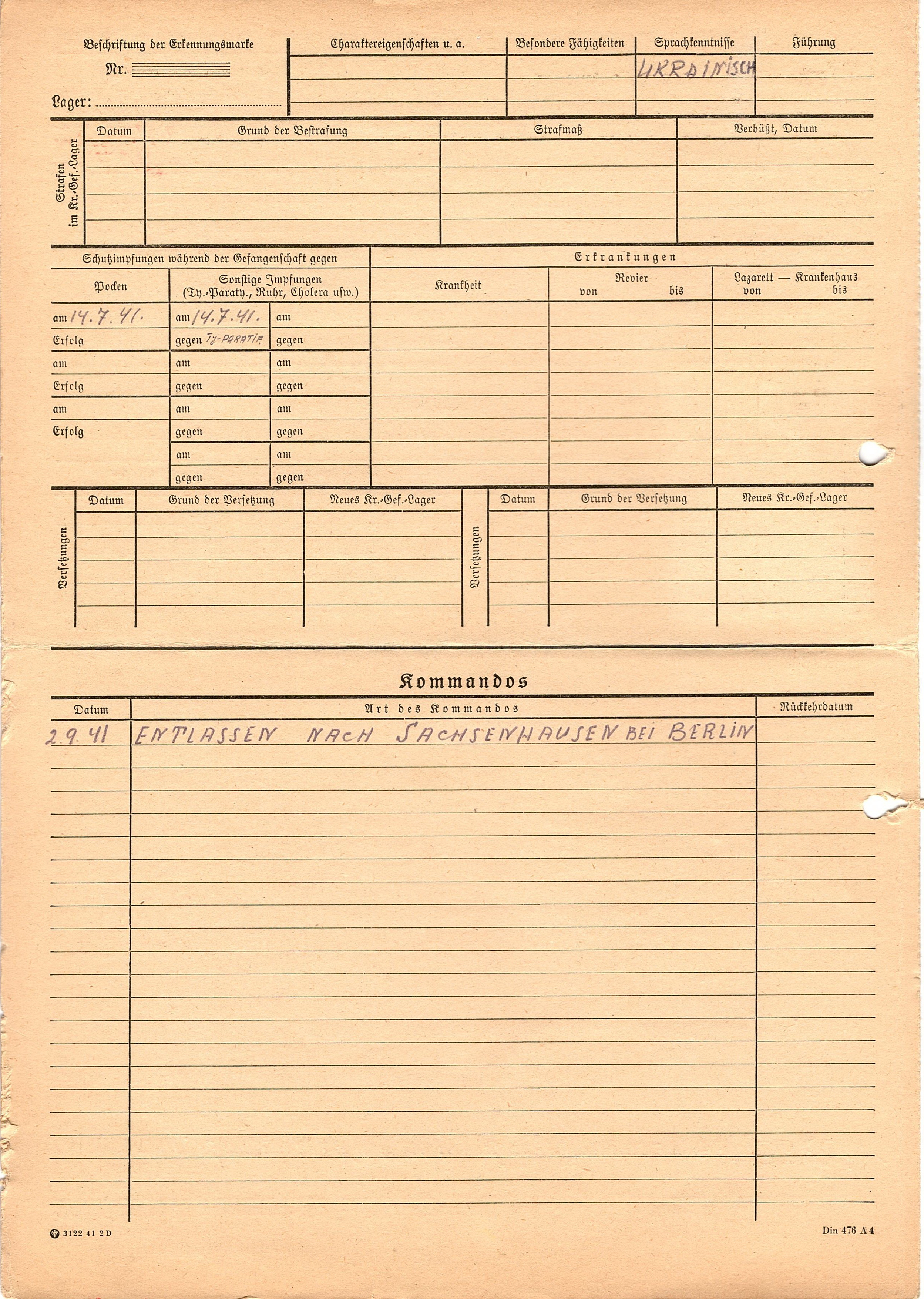 Военнопленные, трофейные карточки. Киевская обл.