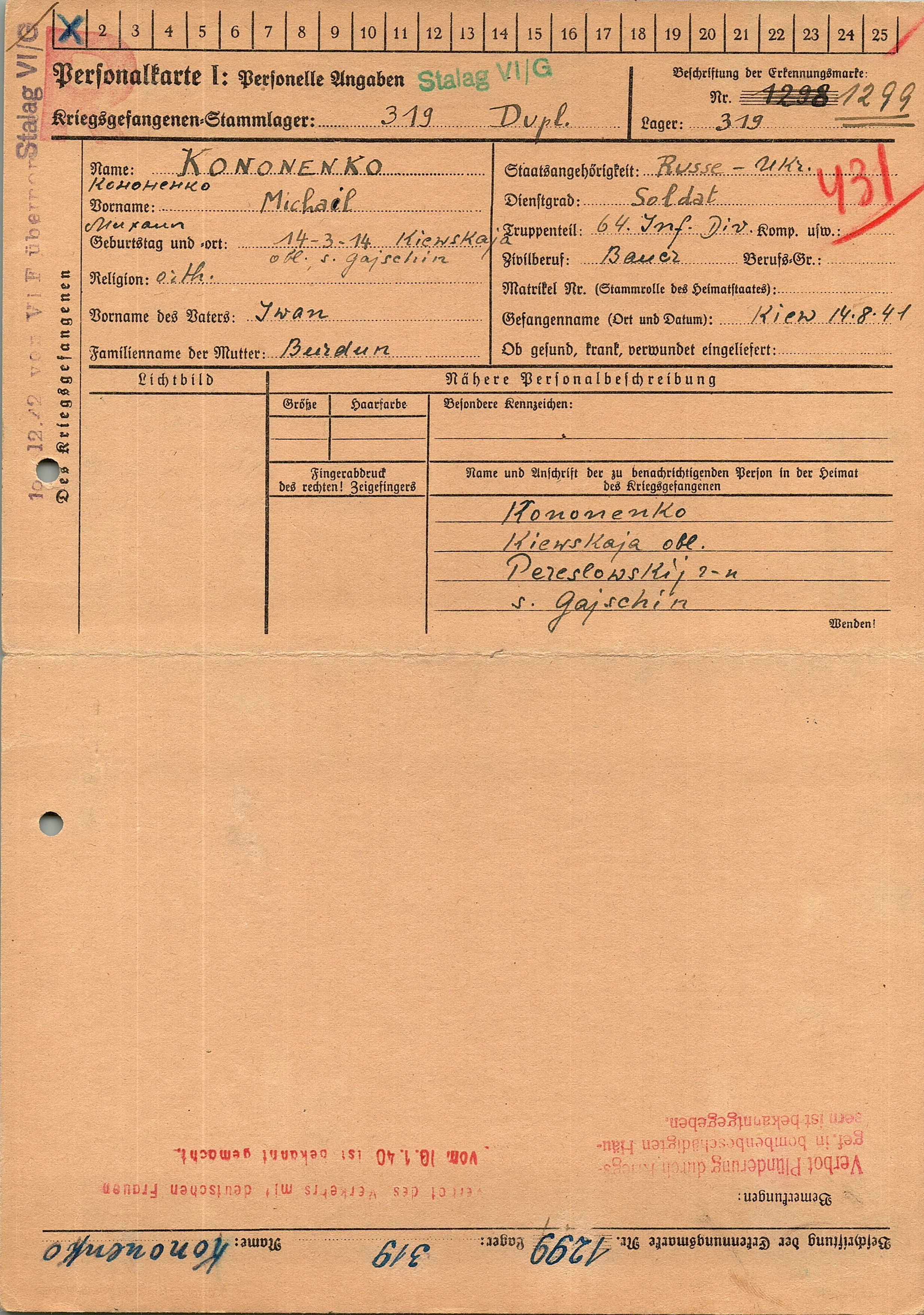 Военнопленные, трофейные карточки. Киевская обл.