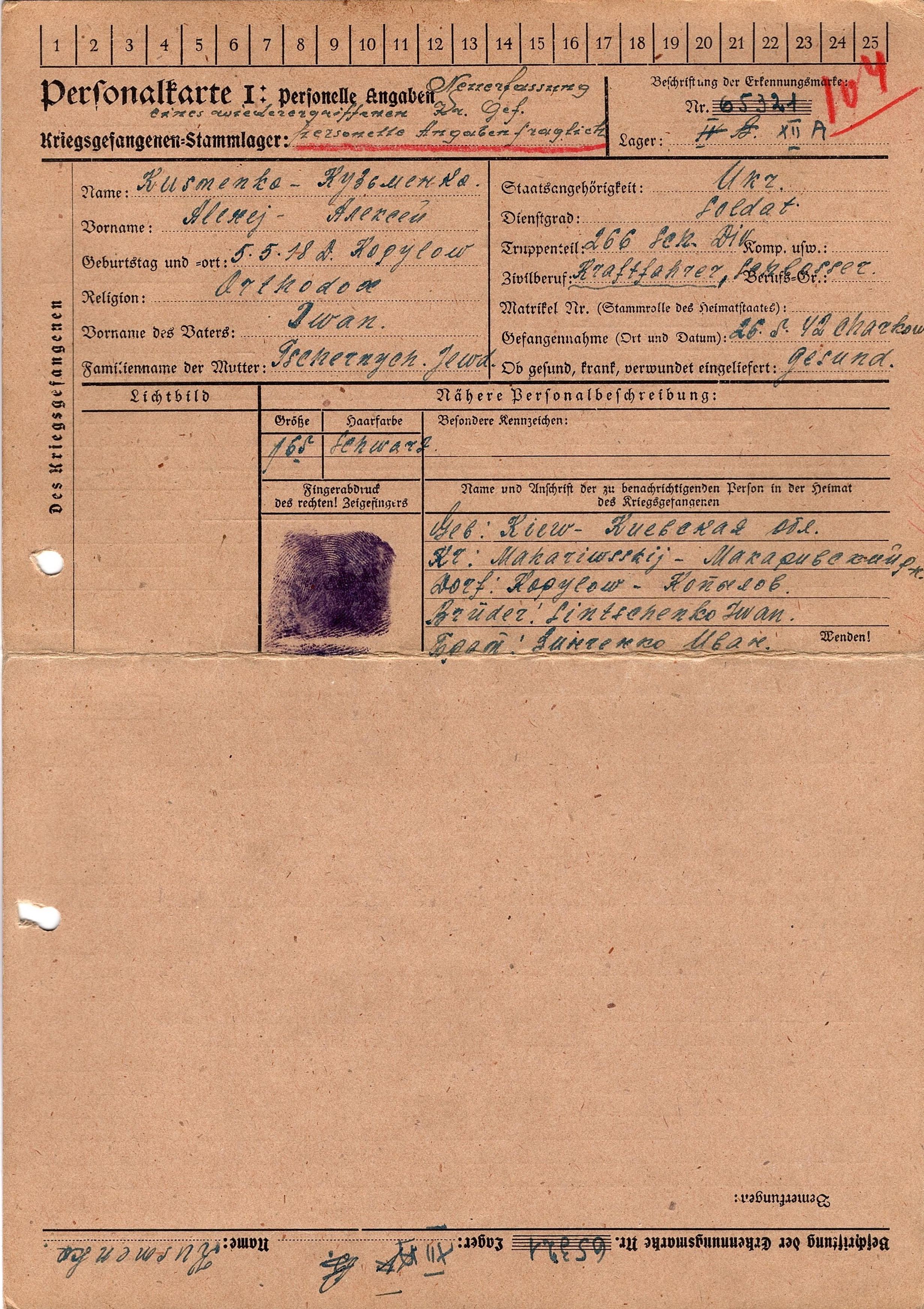 Военнопленные, трофейные карточки. Киевская обл.
