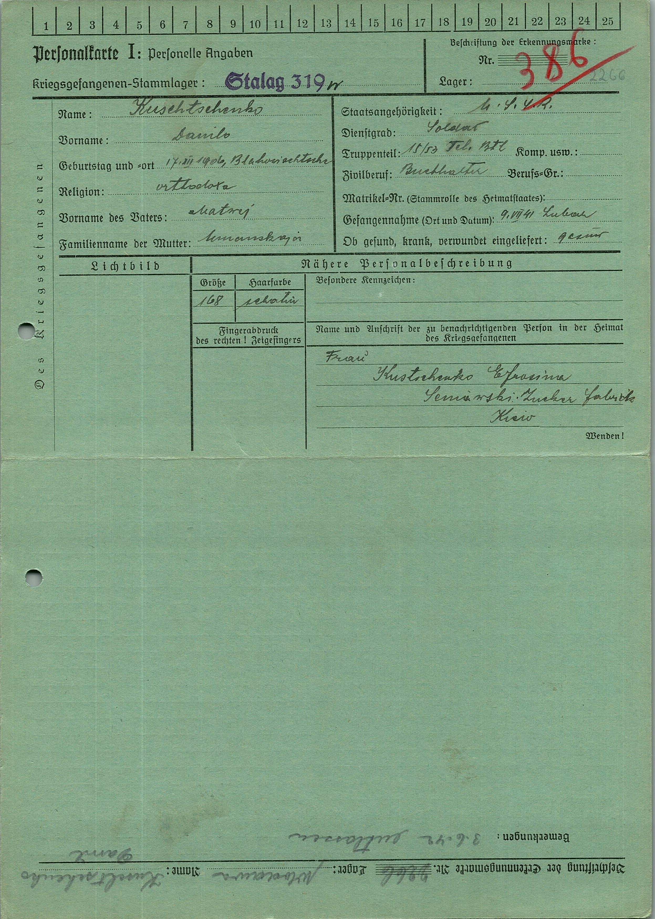 Военнопленные, трофейные карточки. Киевская обл.
