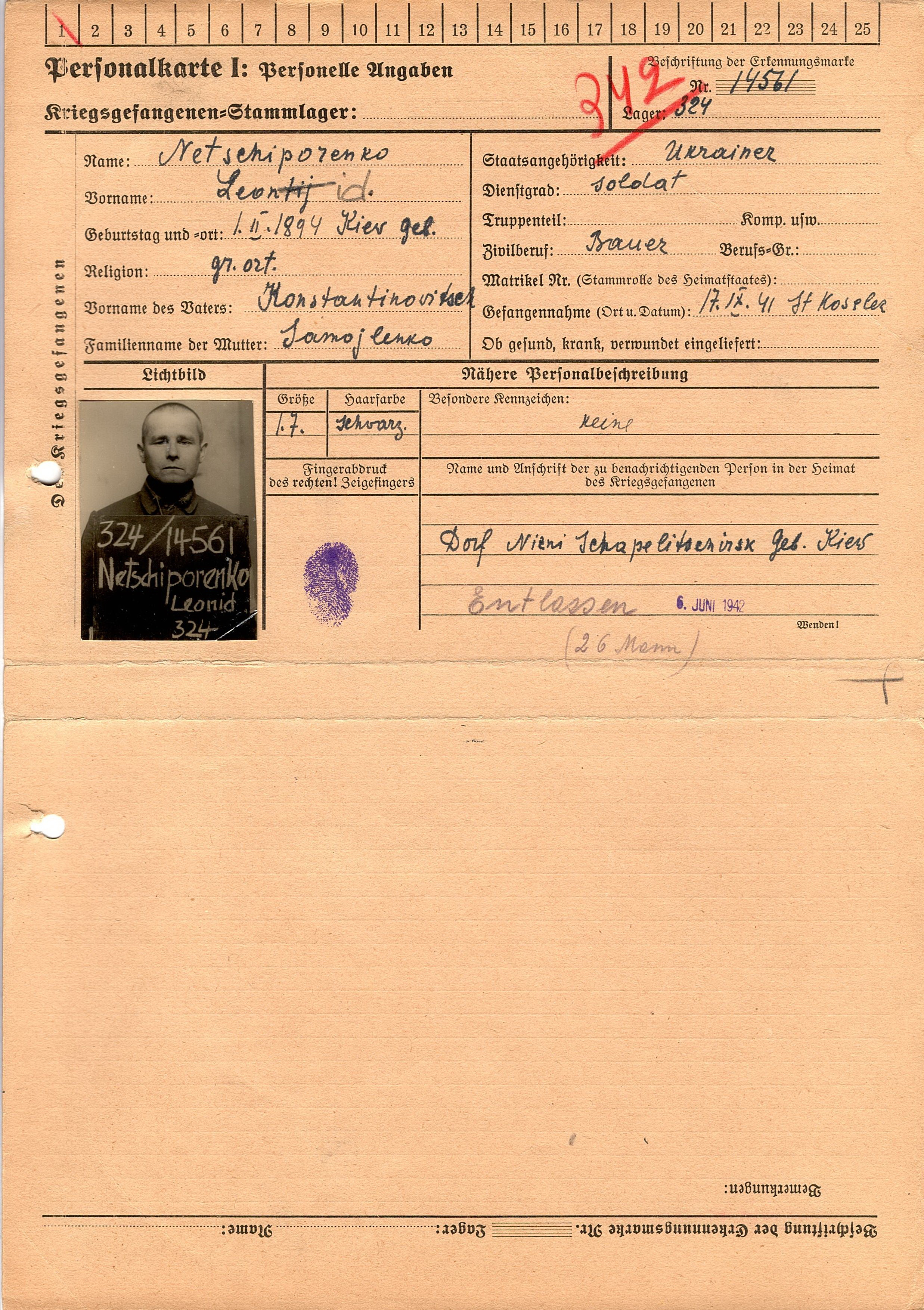 Военнопленные, трофейные карточки. Киевская обл.