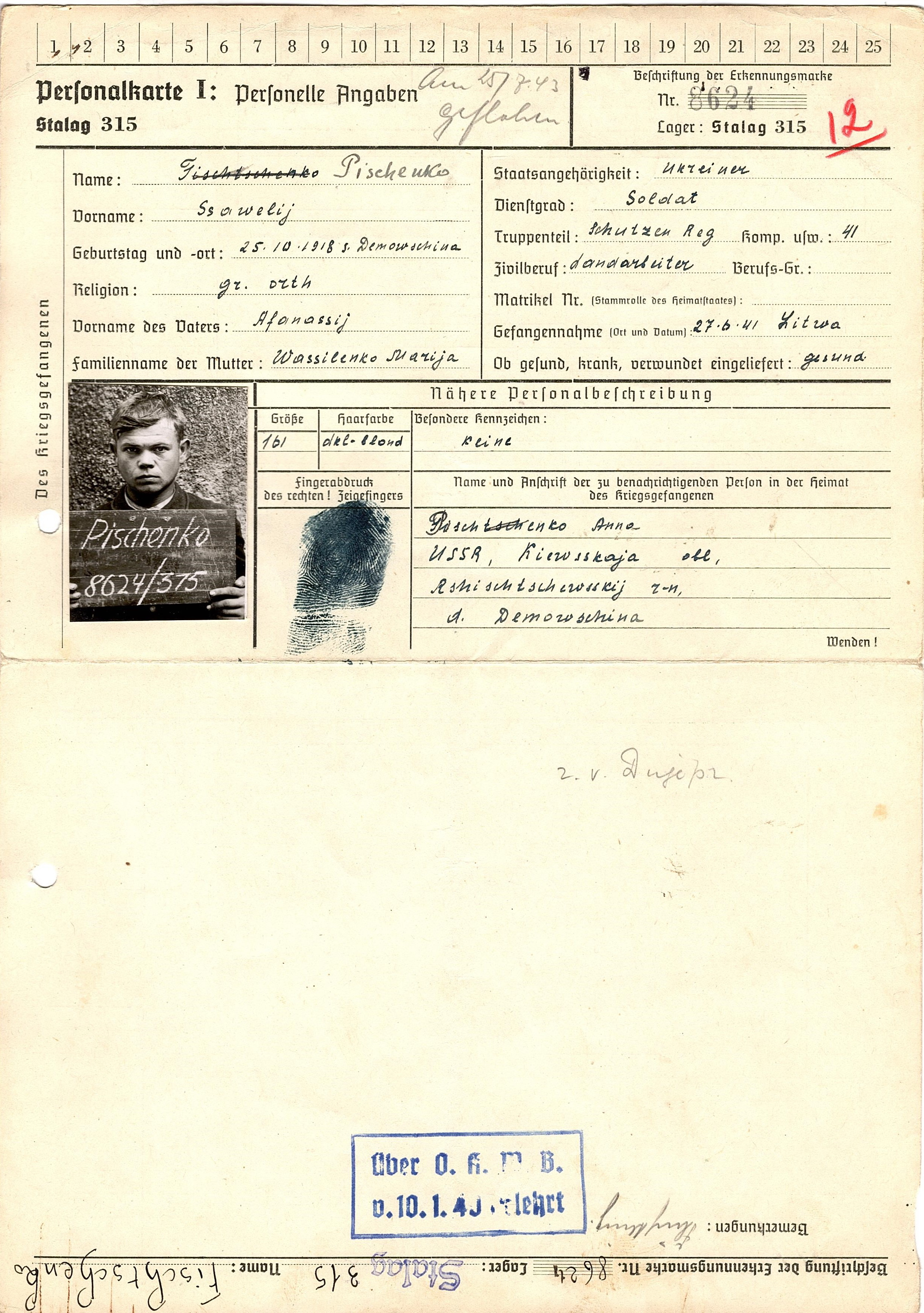 Военнопленные, трофейные карточки. Киевская обл.