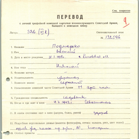 Военнопленные, трофейные карточки. Киевская обл.