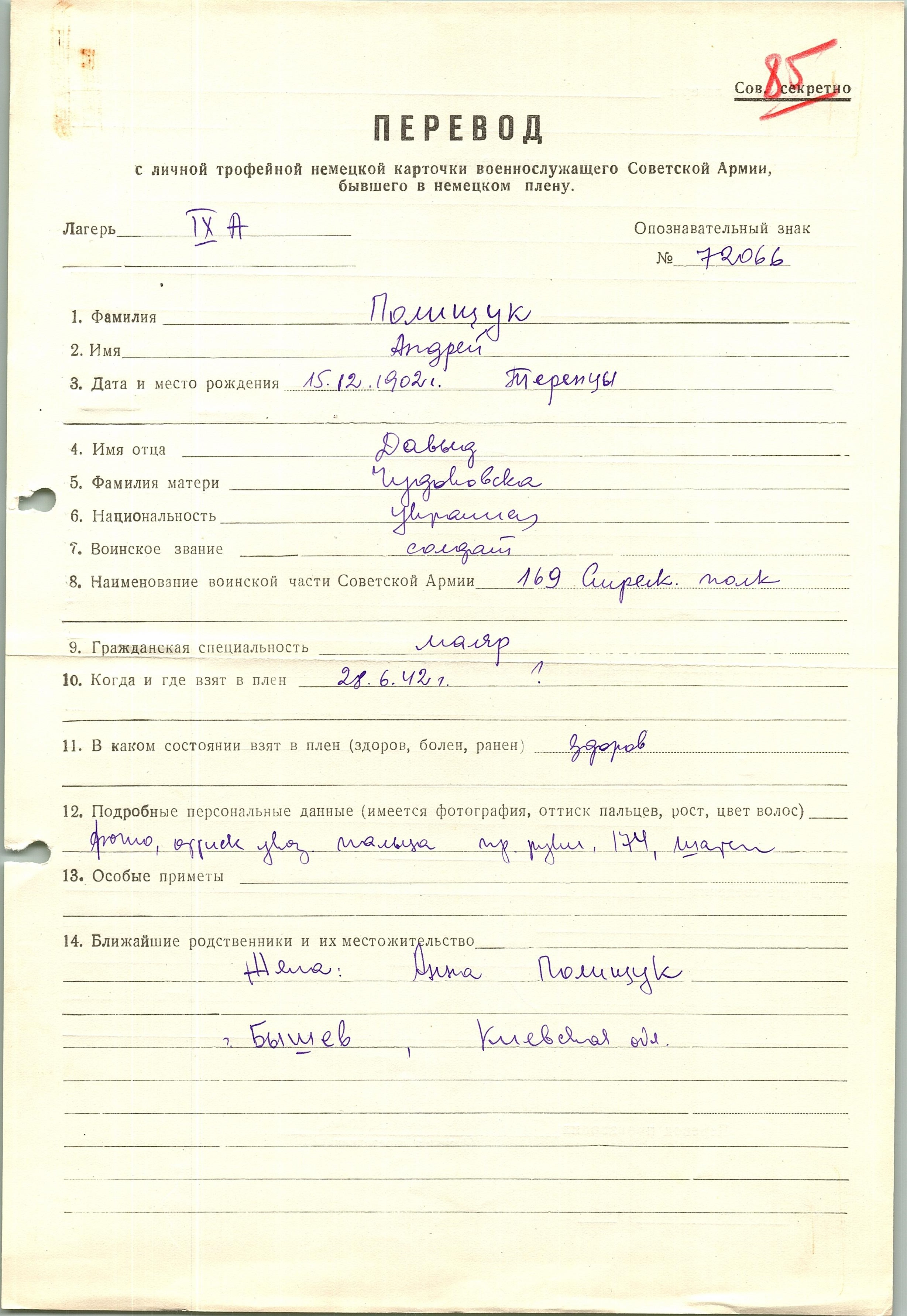 Военнопленные, трофейные карточки. Киевская обл.