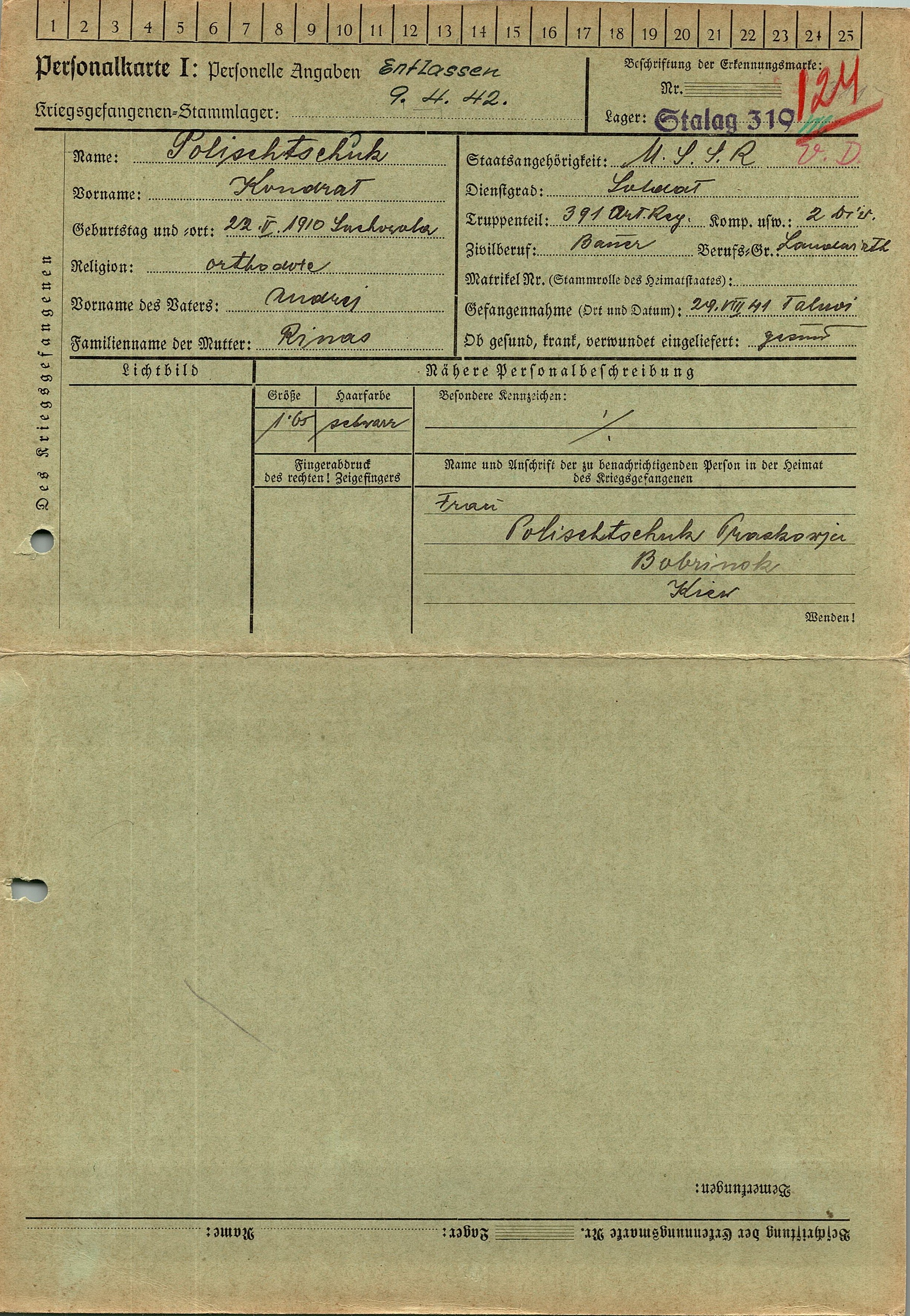 Военнопленные, трофейные карточки. Киевская обл.