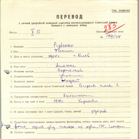 Военнопленные, трофейные карточки. Киевская обл.