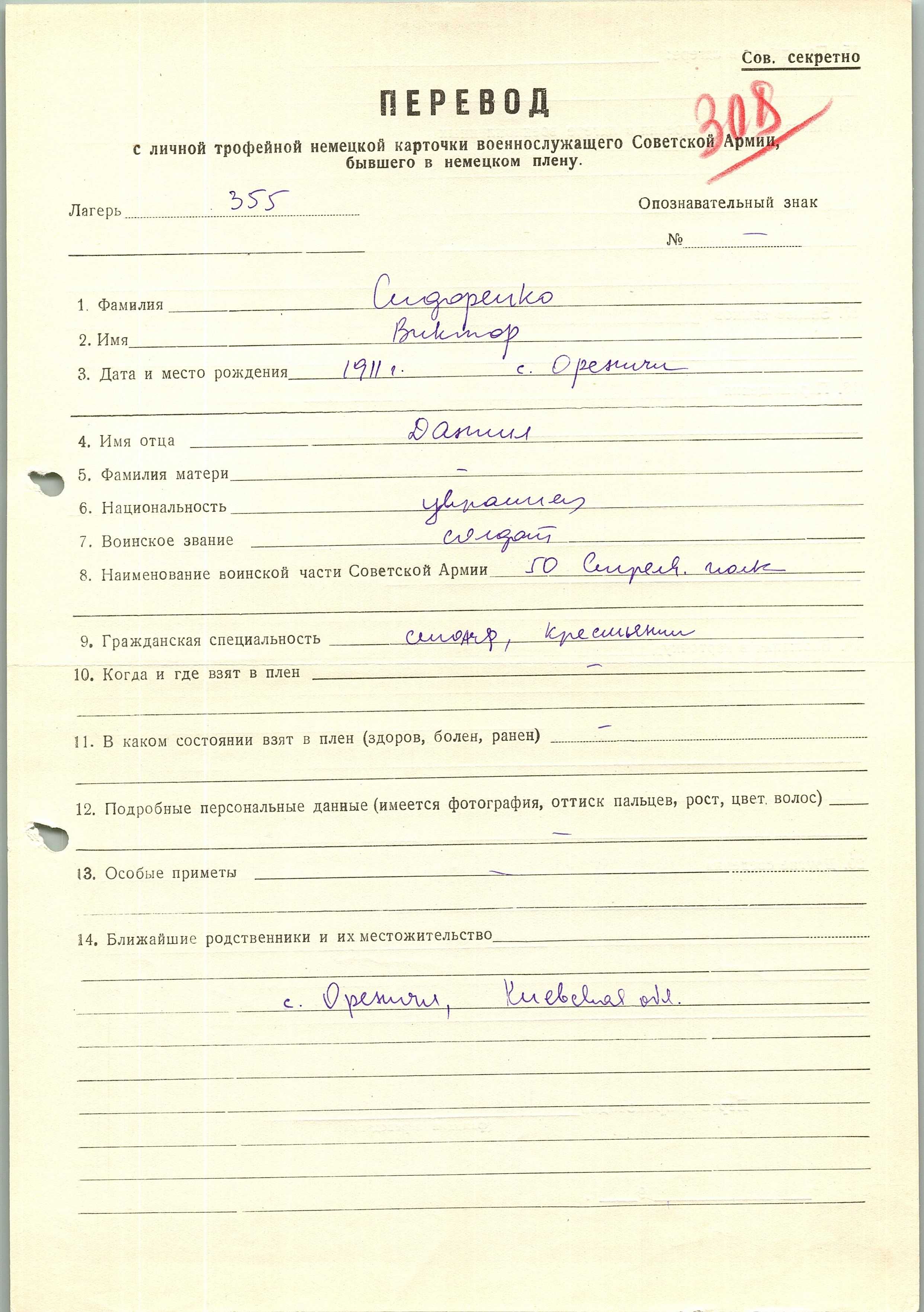 Военнопленные, трофейные карточки. Киевская обл.
