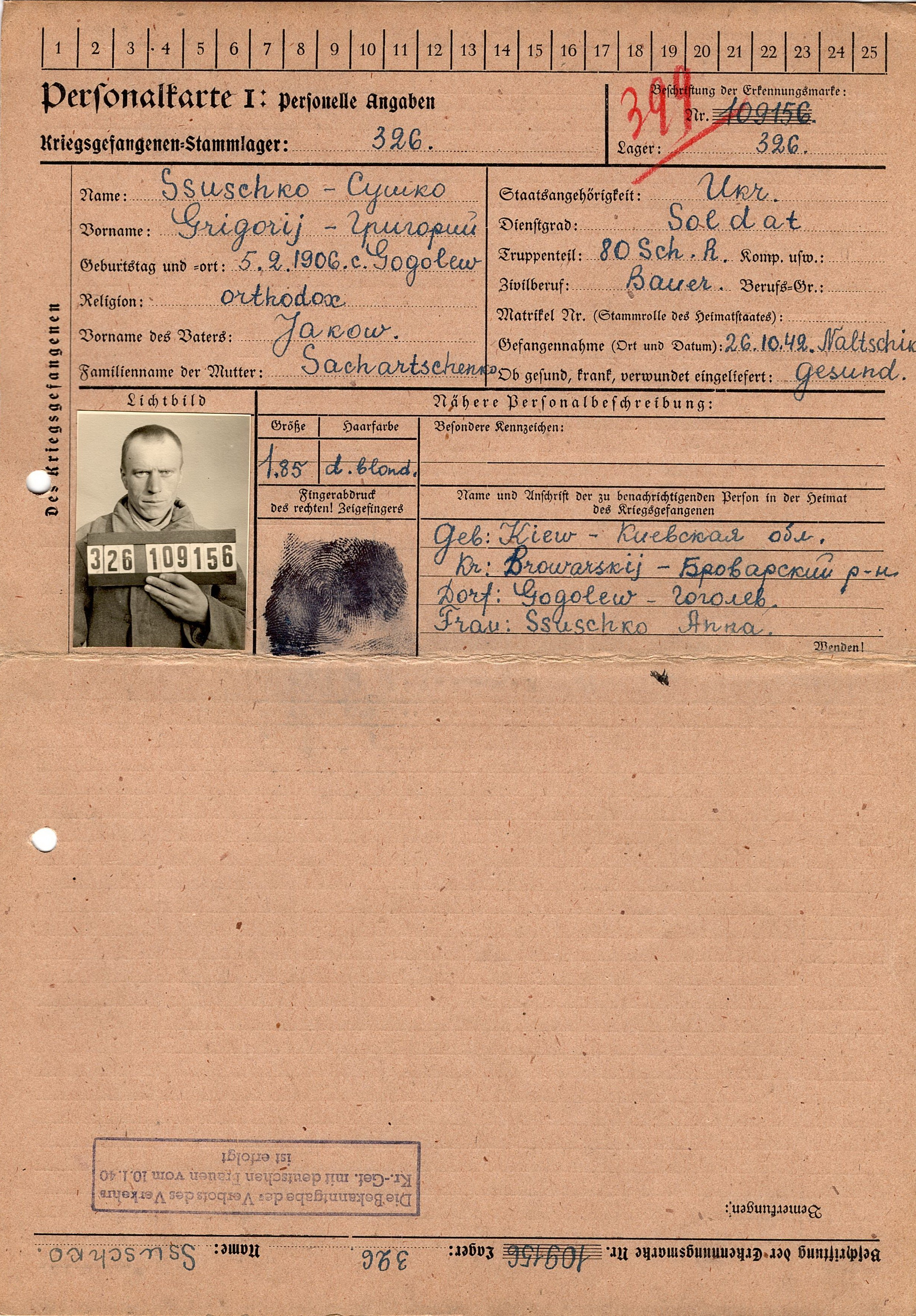 Военнопленные, трофейные карточки. Киевская обл.
