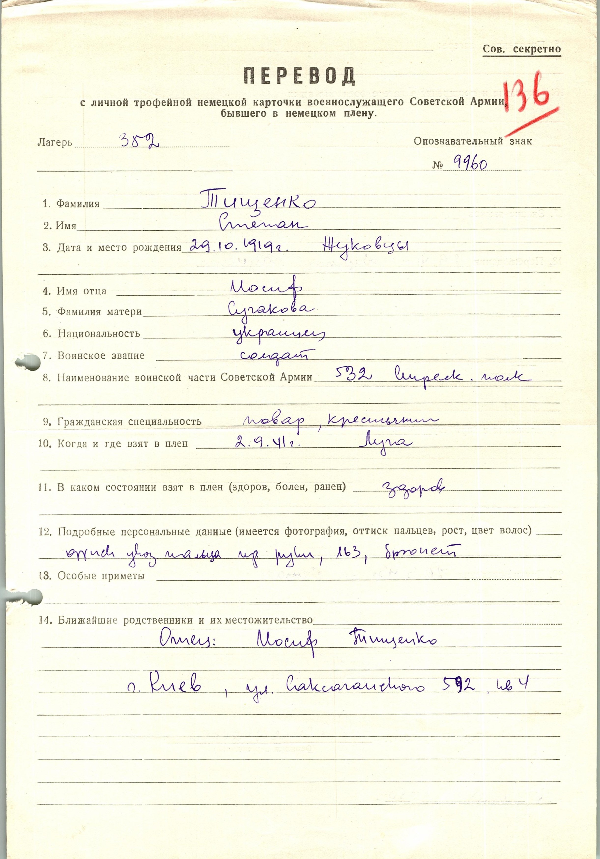 Военнопленные, трофейные карточки. Киевская обл.