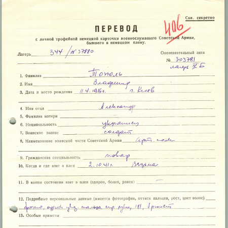 Военнопленные, трофейные карточки. Киевская обл.