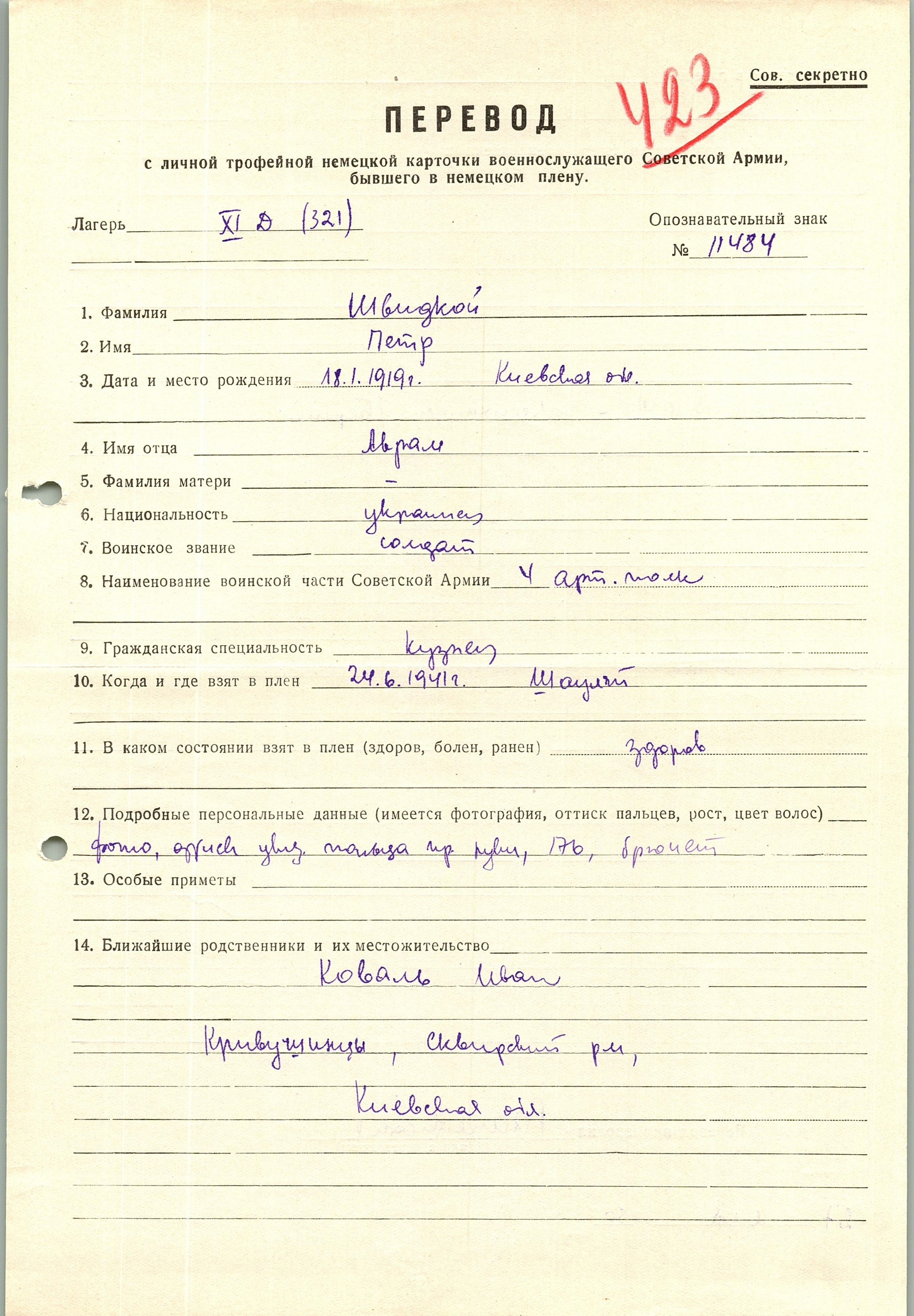 Военнопленные, трофейные карточки. Киевская обл.