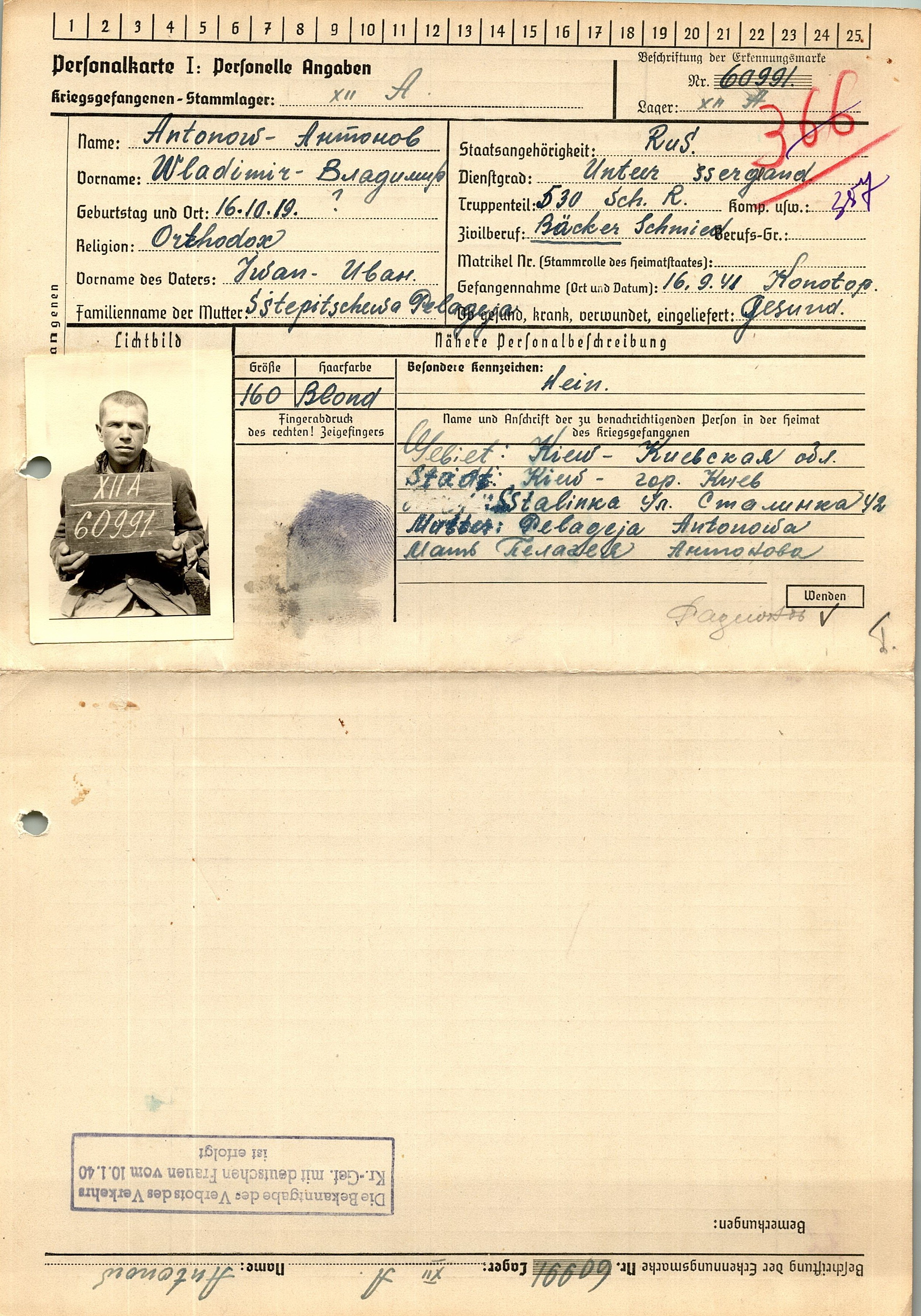 Военнопленные, трофейные карточки. Киевская обл.