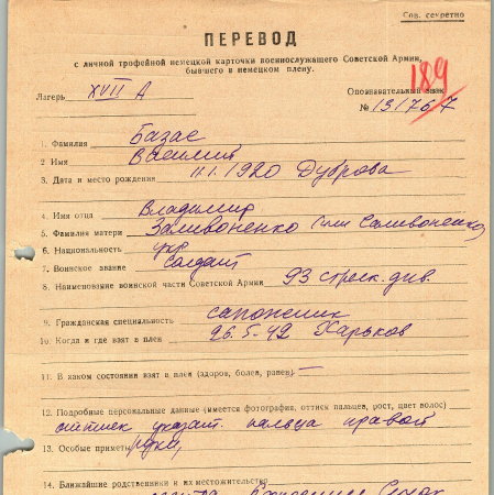 Военнопленные, трофейные карточки. Киевская обл.