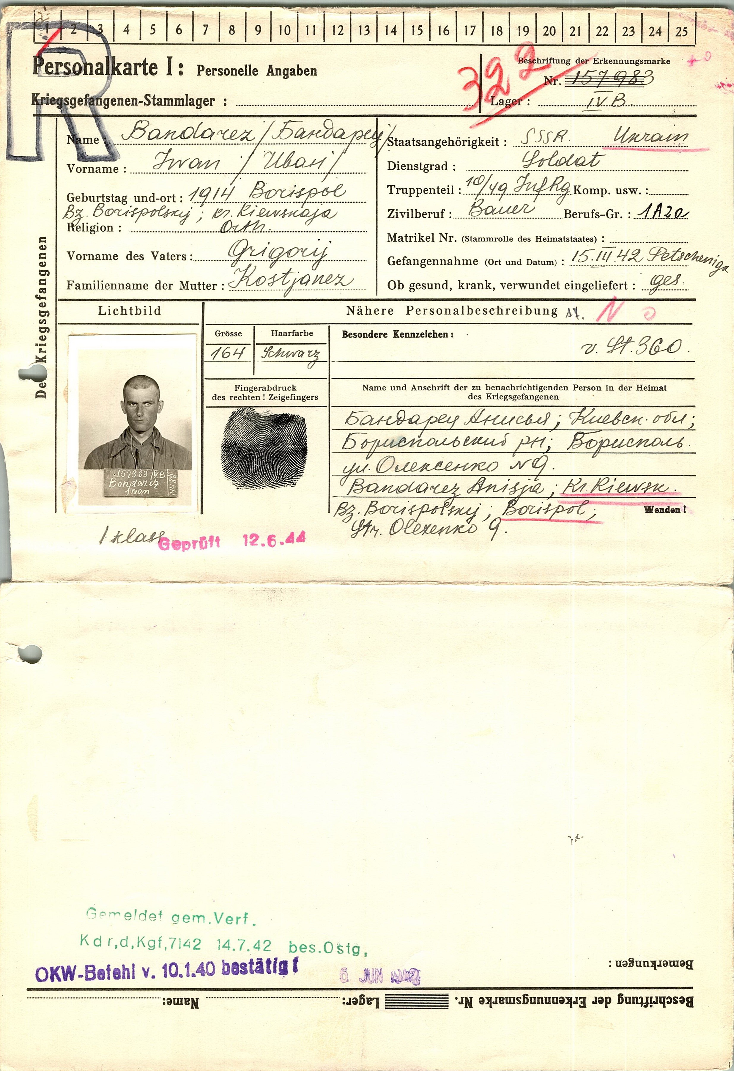 Военнопленные, трофейные карточки. Киевская обл.