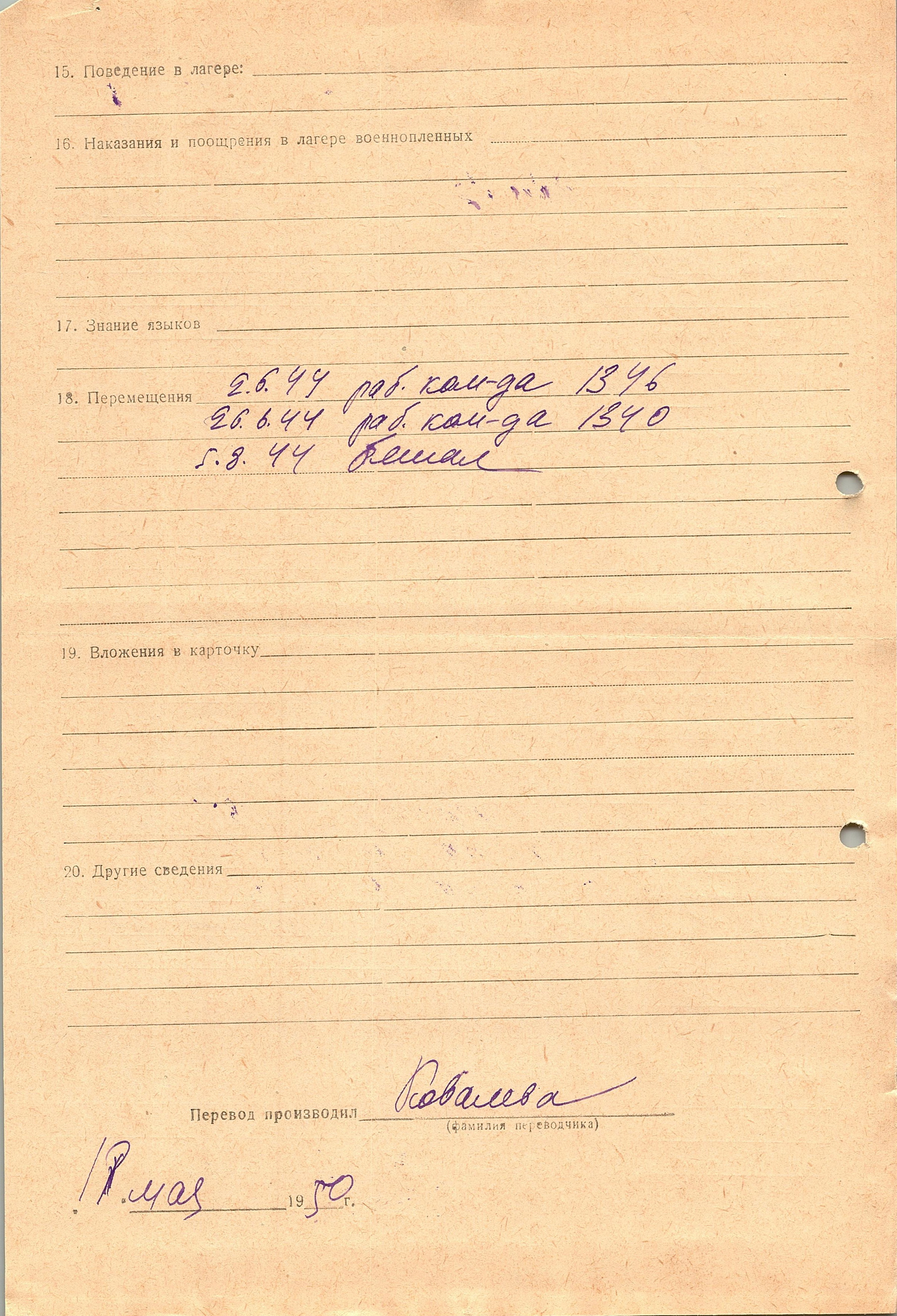 Военнопленные, трофейные карточки. Киевская обл.