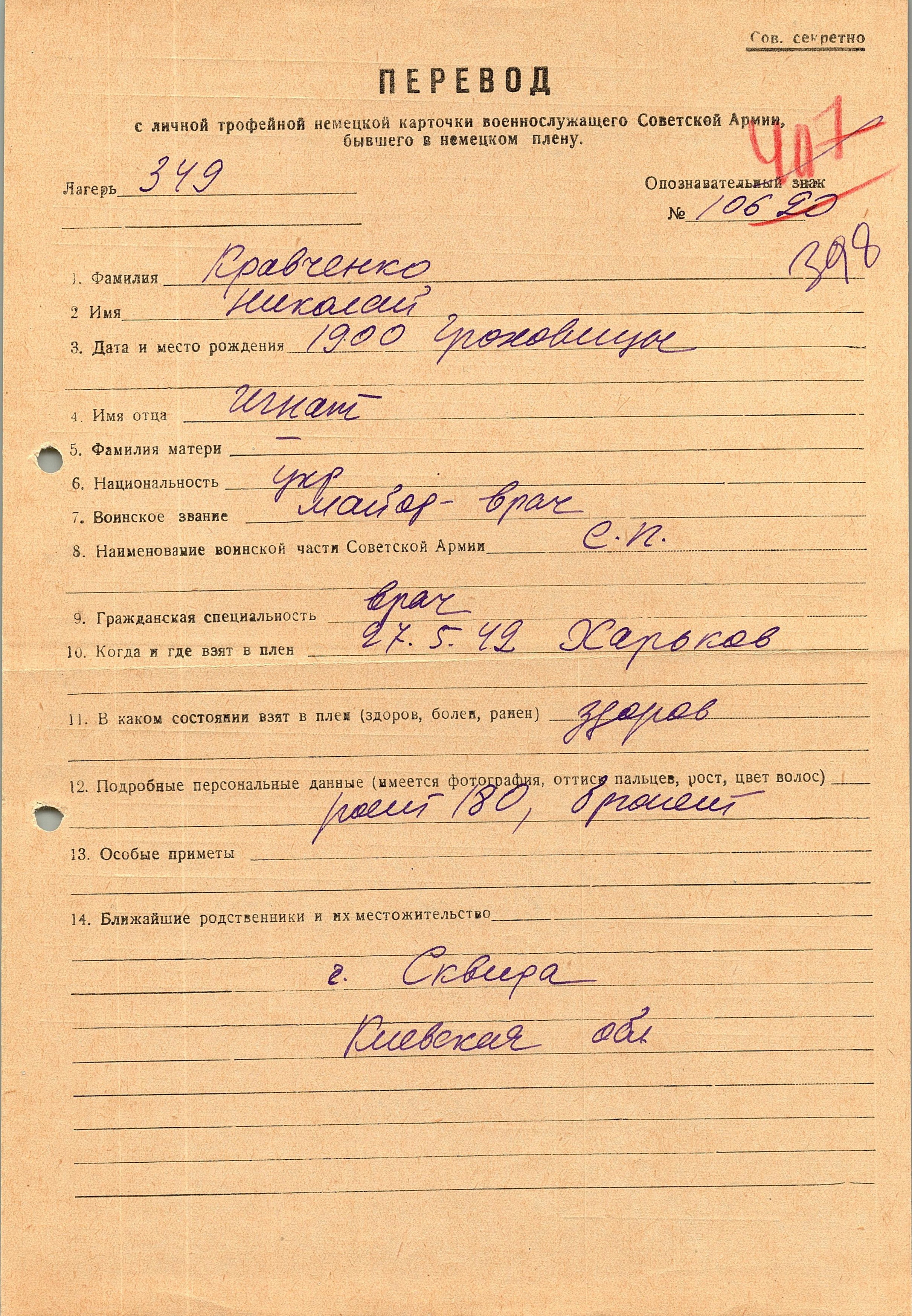 Военнопленные, трофейные карточки. Киевская обл.