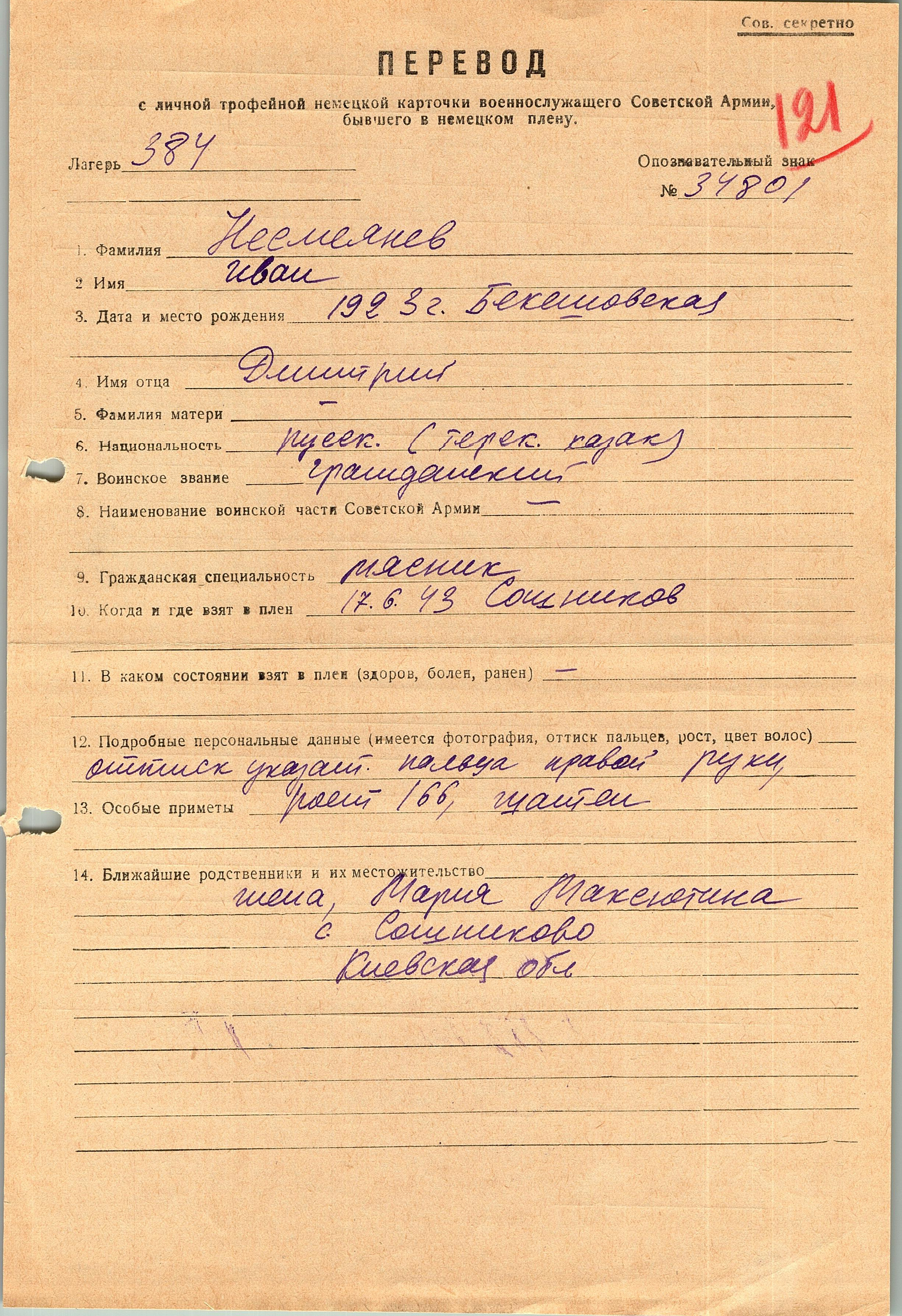 Военнопленные, трофейные карточки. Киевская обл.