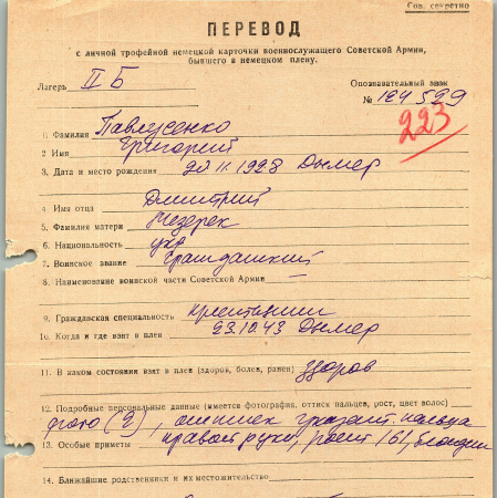 Военнопленные, трофейные карточки. Киевская обл.