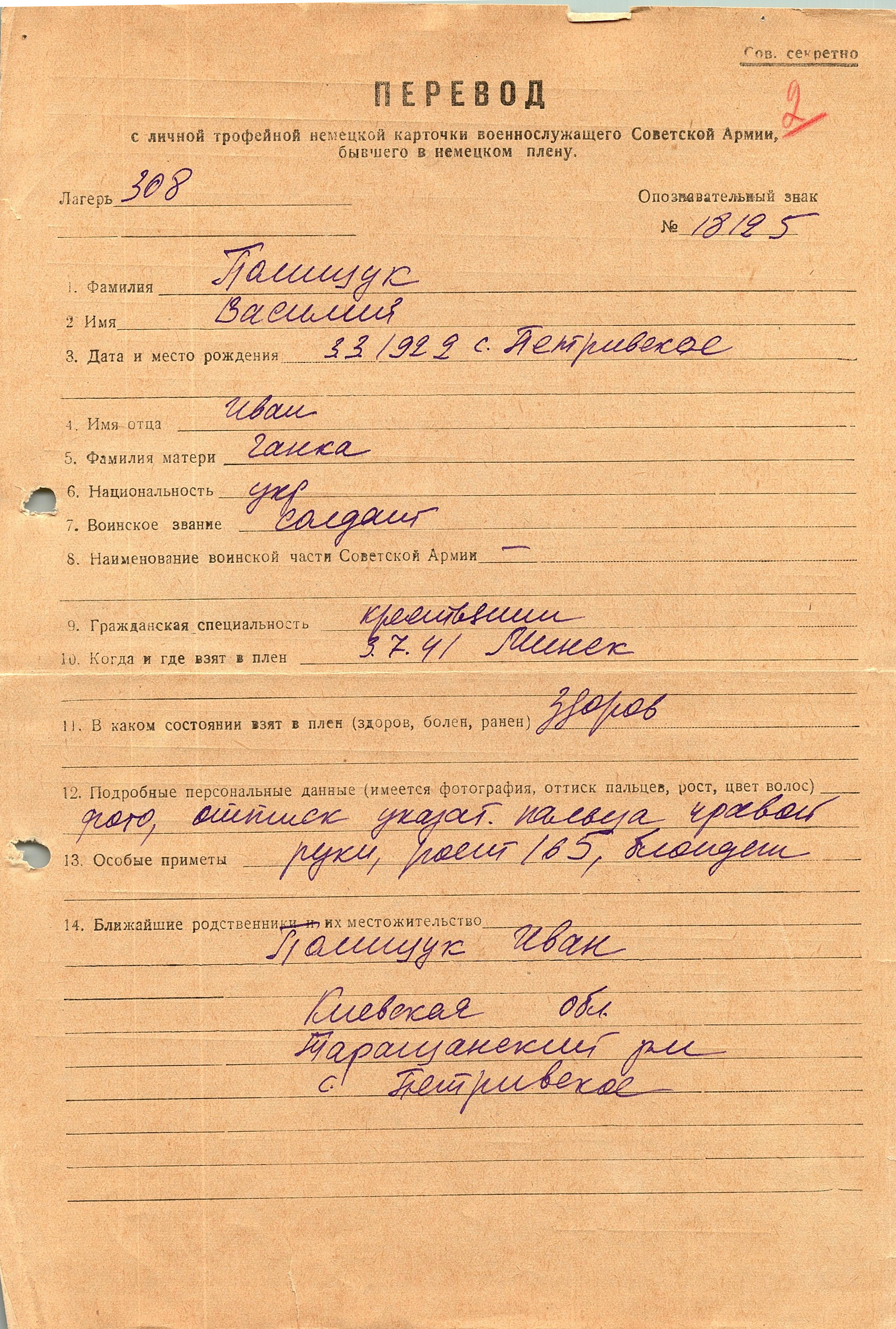 Военнопленные, трофейные карточки. Киевская обл.