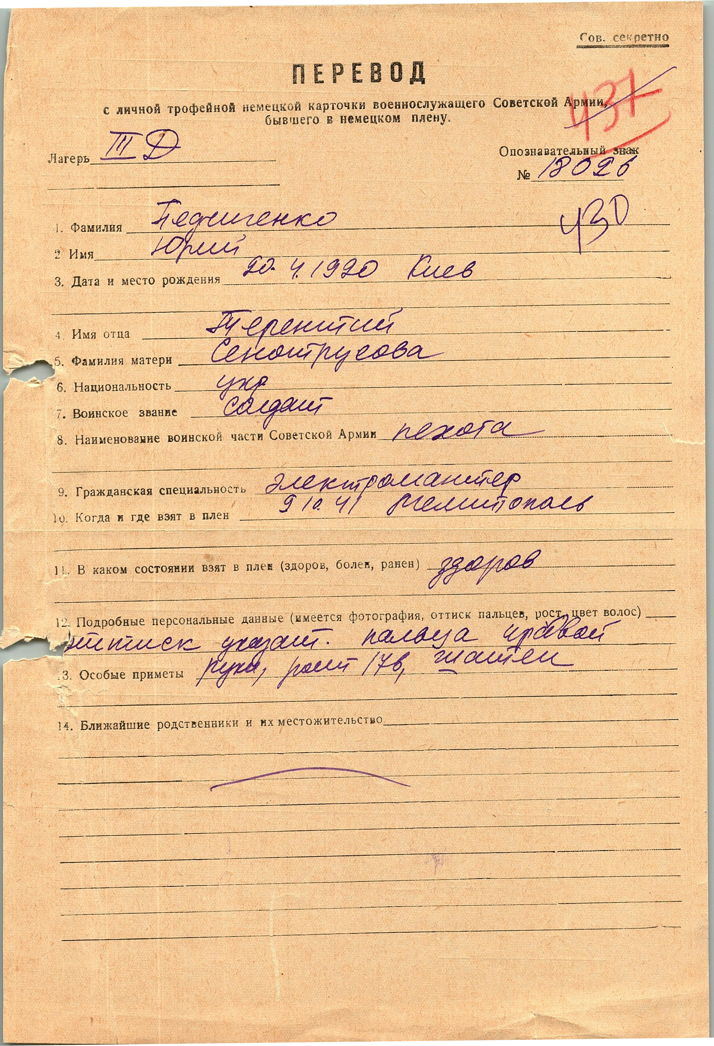 Военнопленные, трофейные карточки. Киевская обл.