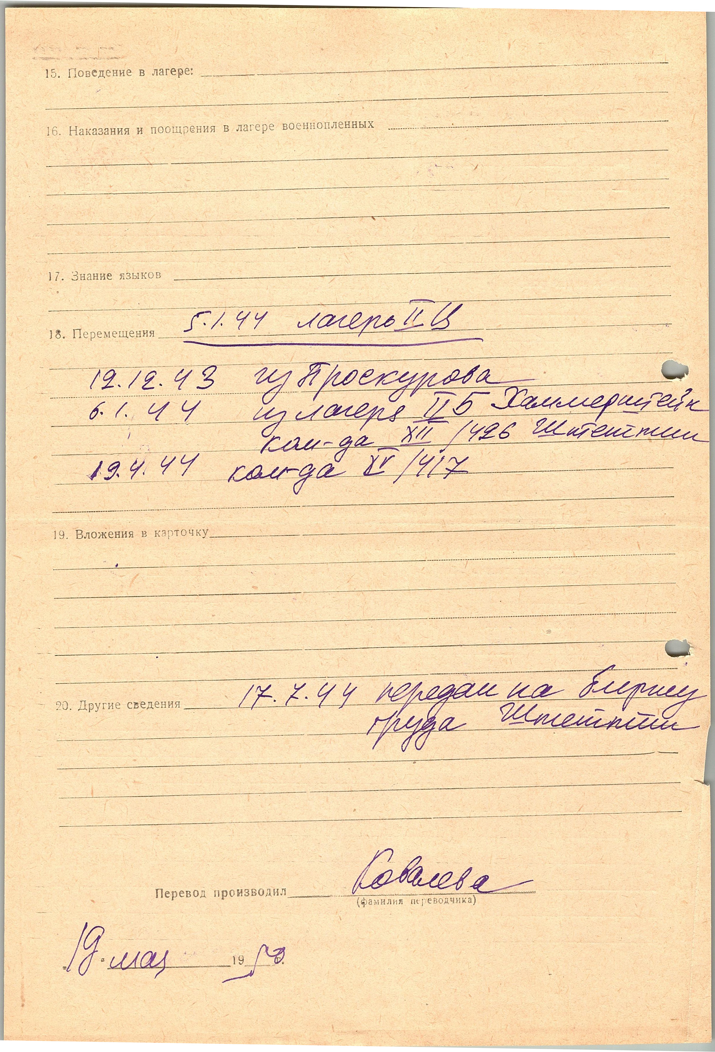Военнопленные, трофейные карточки. Киевская обл.