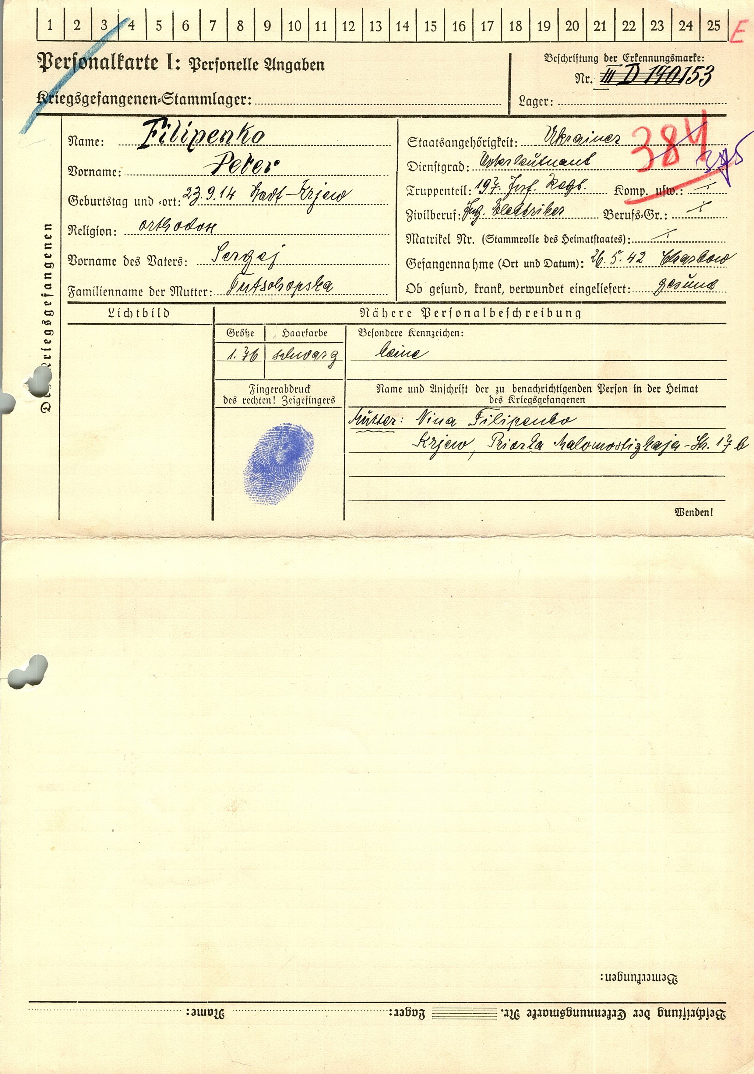 Военнопленные, трофейные карточки. Киевская обл.
