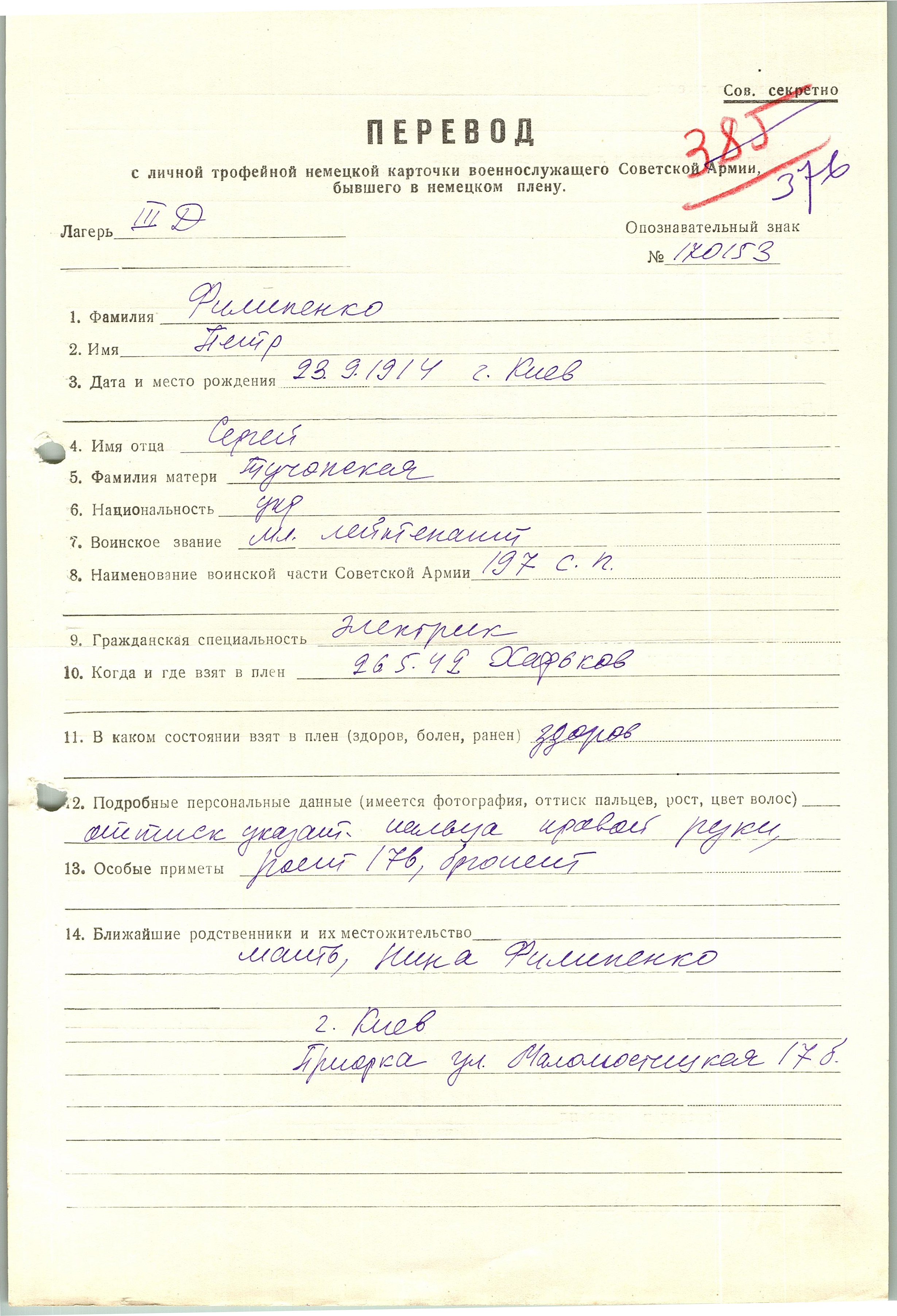 Военнопленные, трофейные карточки. Киевская обл.