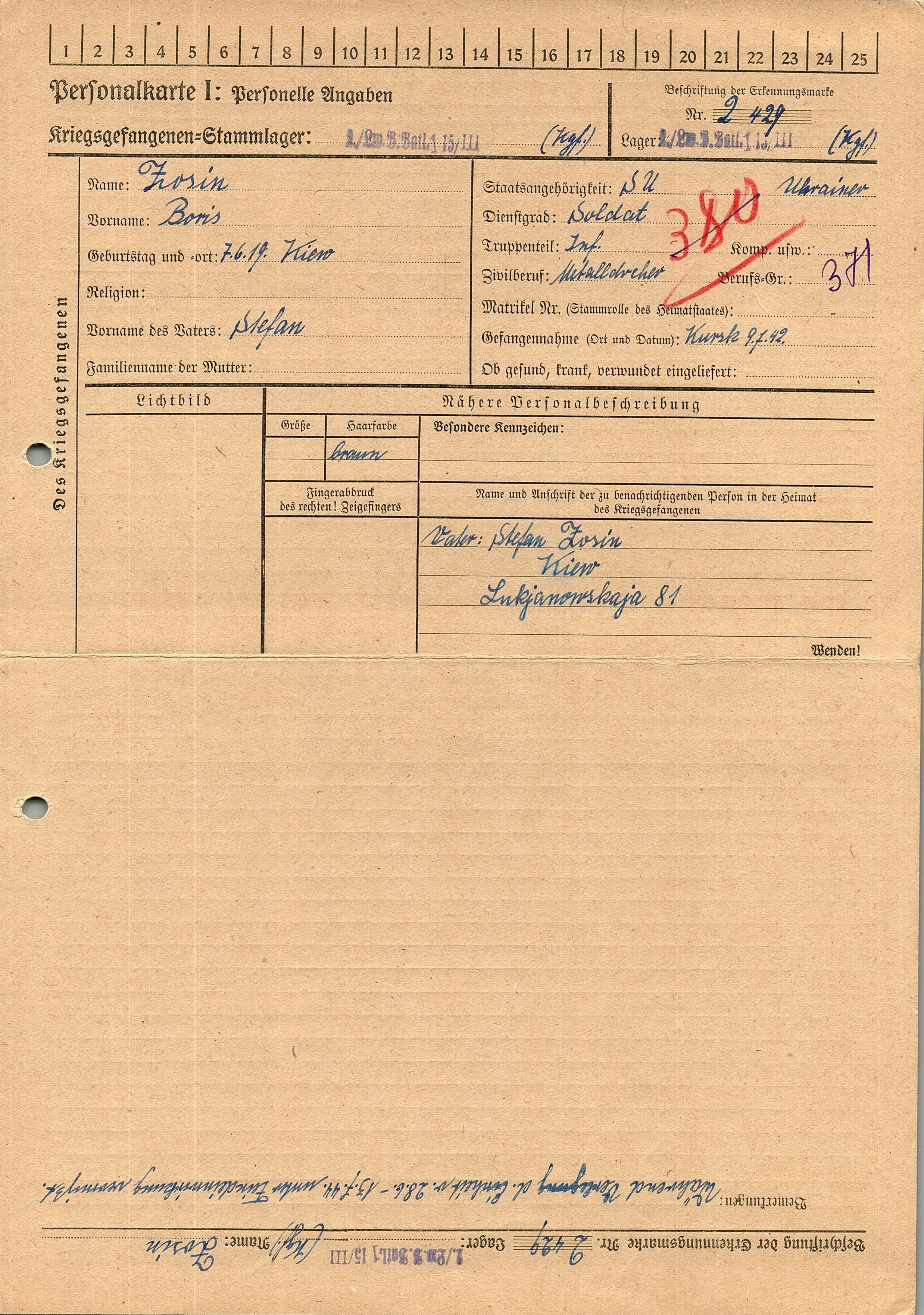 Военнопленные, трофейные карточки. Киевская обл.