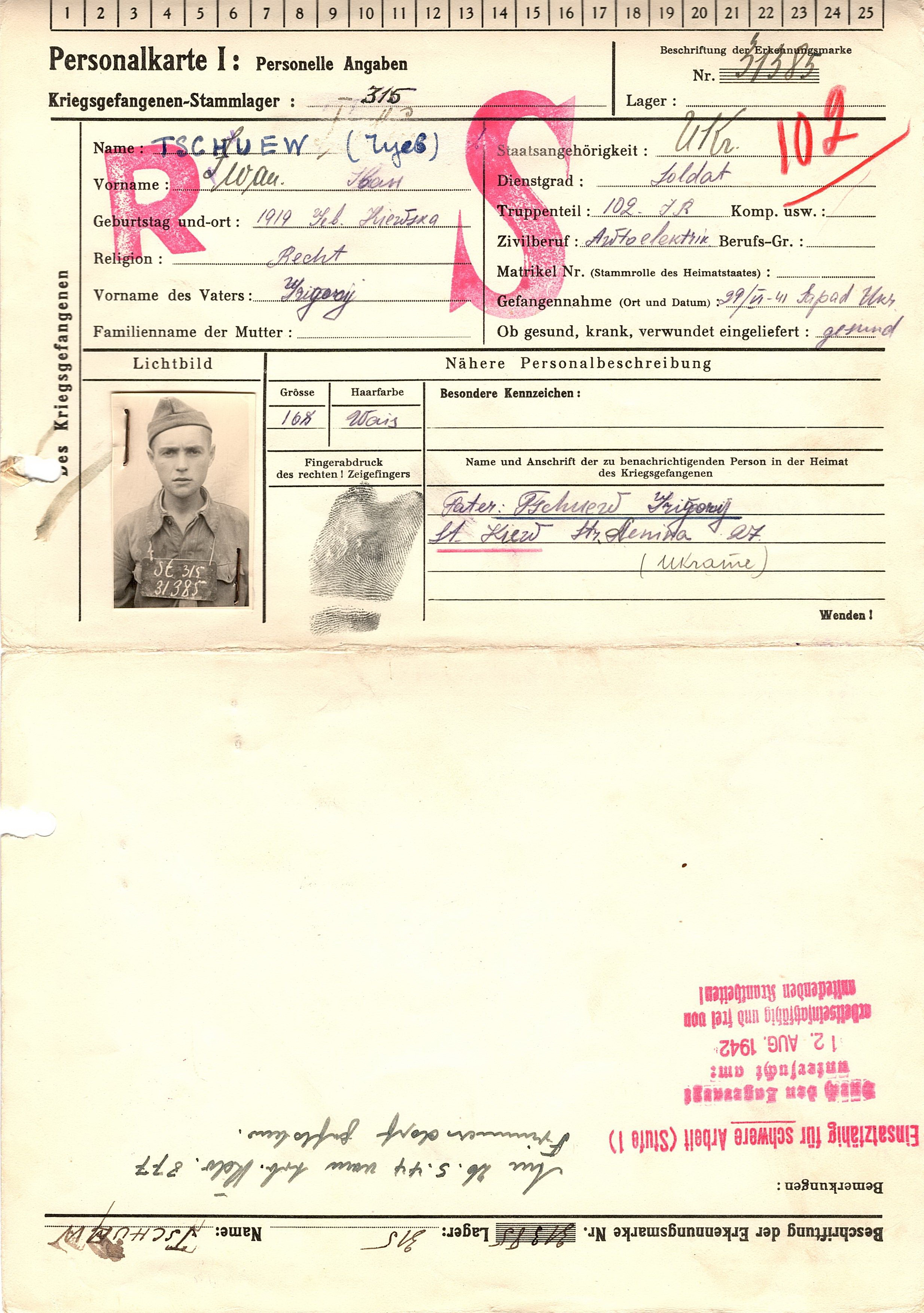 Военнопленные, трофейные карточки. Киевская обл.
