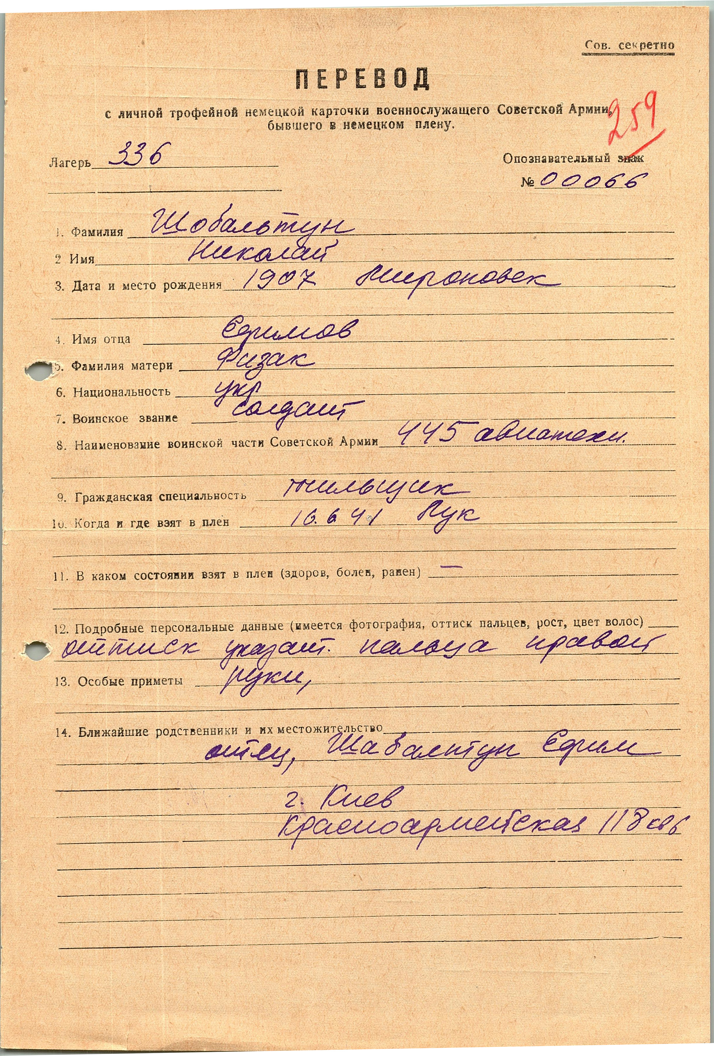Военнопленные, трофейные карточки. Киевская обл.