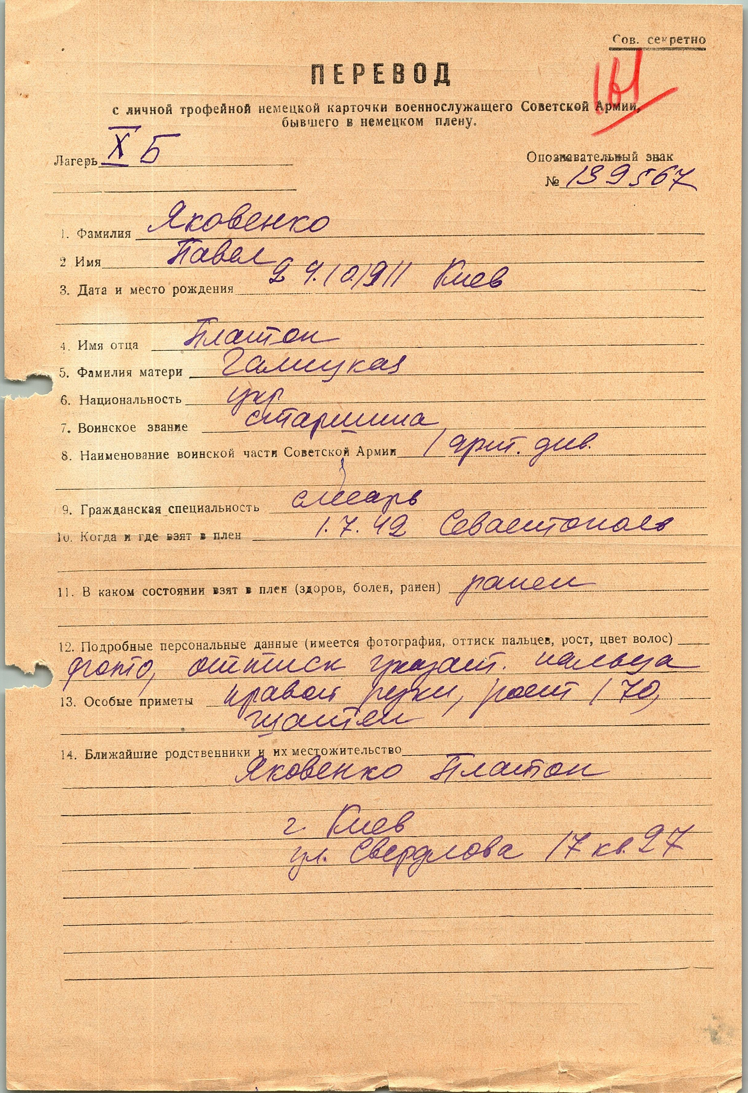 Военнопленные, трофейные карточки. Киевская обл.